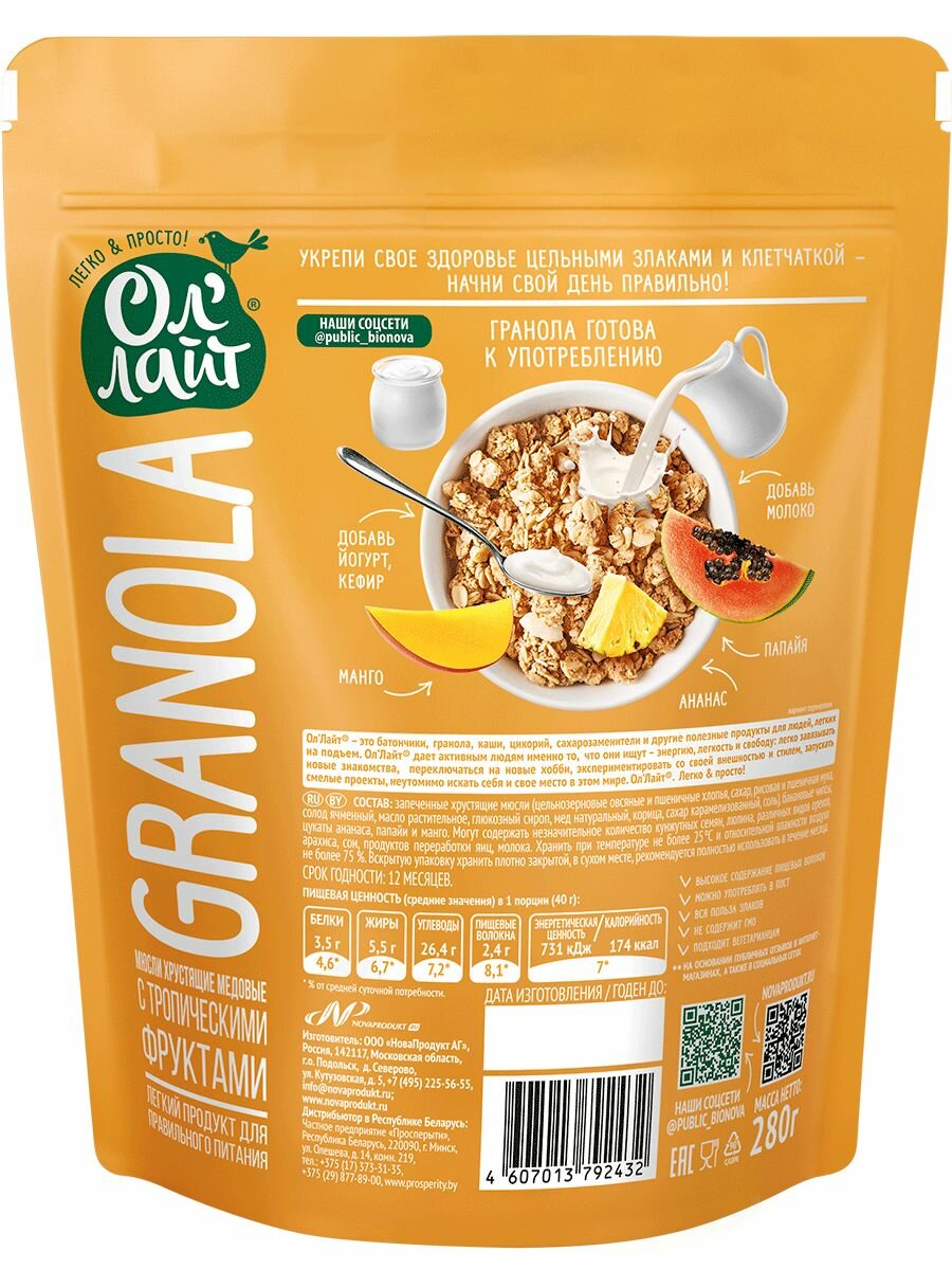 Мюсли "Ол'Лайт" тропические фрукты 280г интересное: