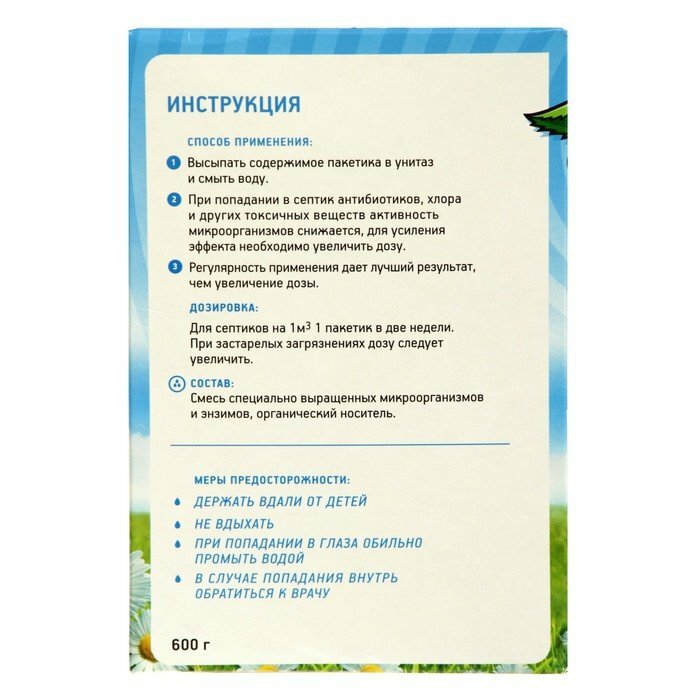 | Отзыв: | Каждый год покупаю для септика в загородном доме. Каждые 10 дней высыпаю 1 пакетик в унитаз. Очень удобно! |