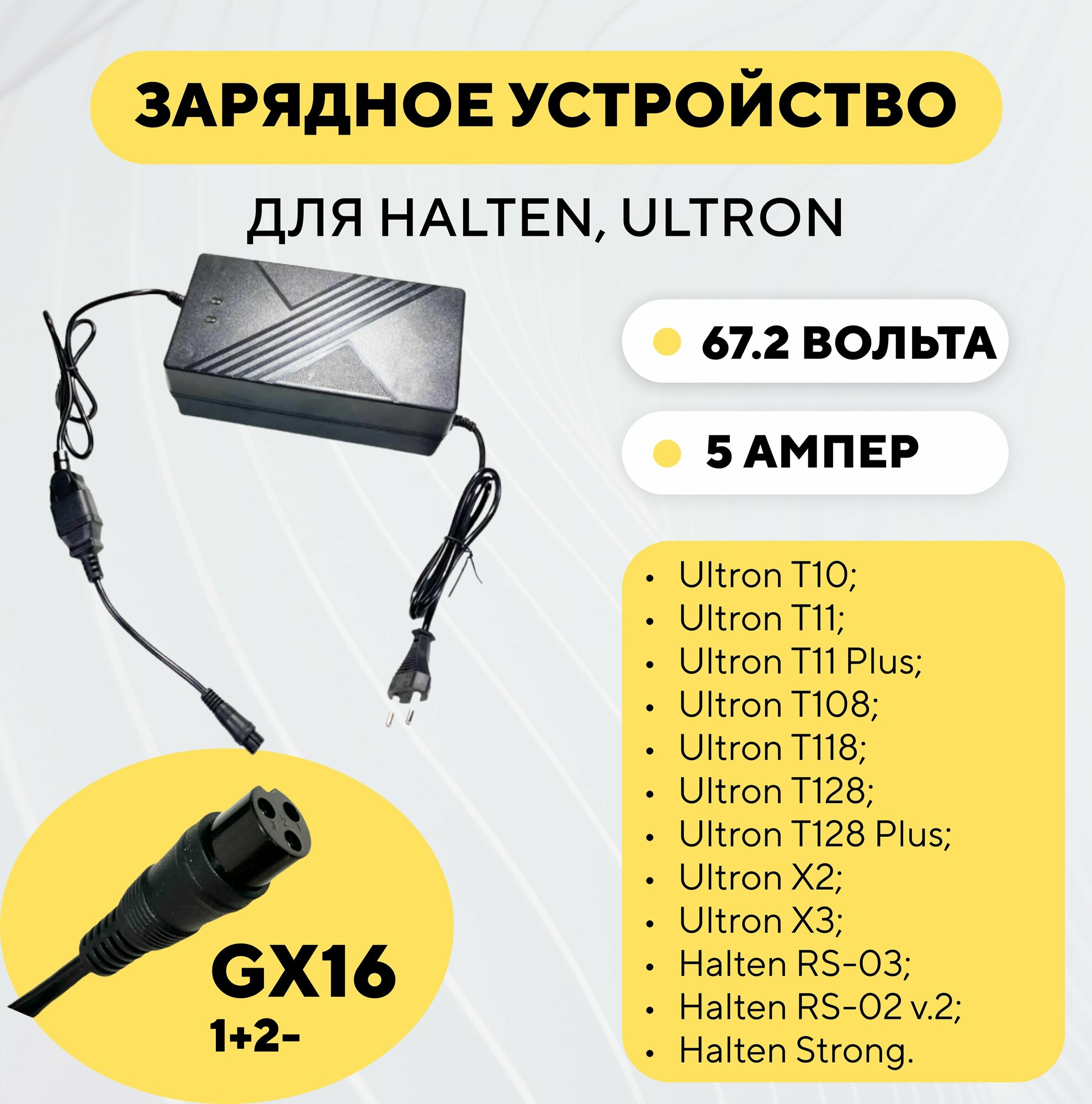Зарядное устройство 60V 5A для электросамоката Ultron Т10/T11/T108/T118/T128/X2/X3, Halten RS-03 интересное: