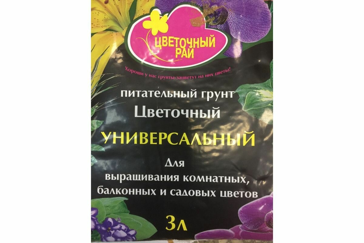 Грунт универсальный для выращивания комнатных/балконных и садовых цветов Цветочный рай 3л