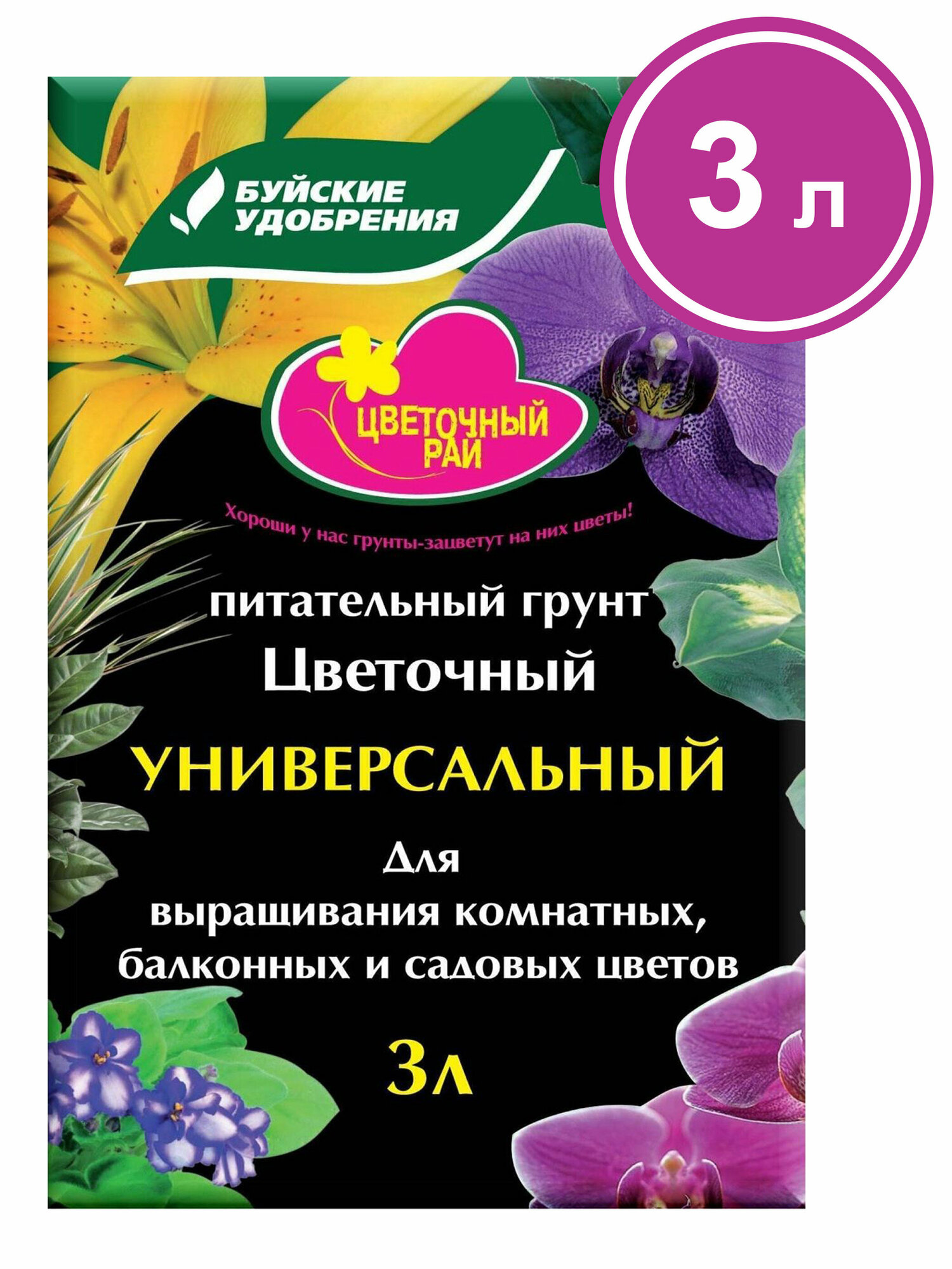 Купить Грунт Буйский химический завод Цветочный рай Универсальный Для выращивания комнатных, балконных и садовых цветов 3 л.