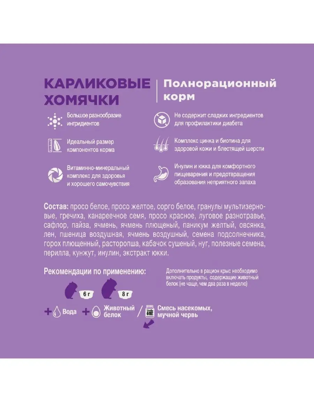 LITTLE ONE 400 г корм для карликовых хомячков интересное: