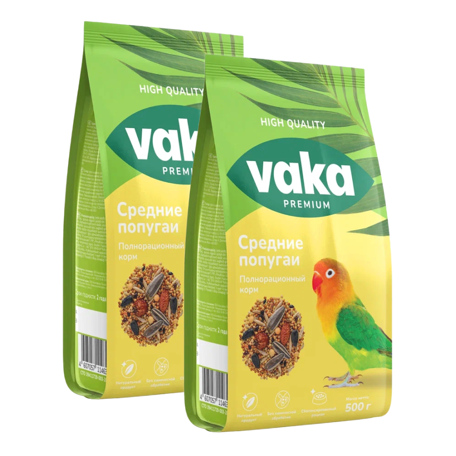 Вака Корм для птиц High Quality для средних попугаев, 500 г