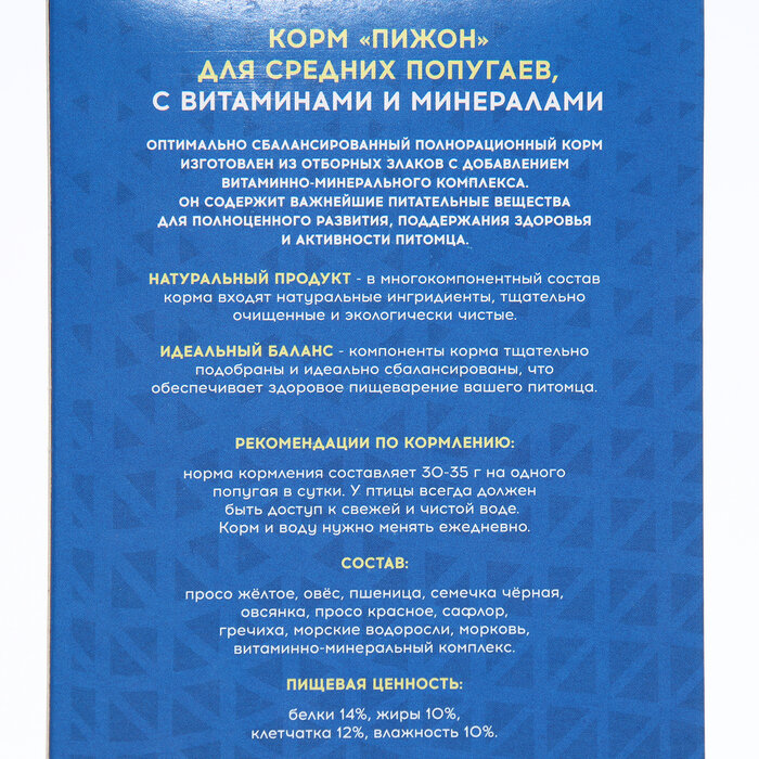 Купить Корм "Пижон" для средних попугаев, с витаминами и минералами, 400 г