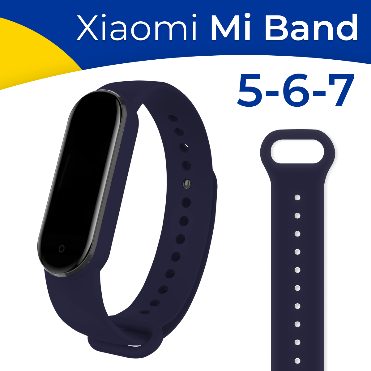 Купить Силиконовый ремешок на фитнес-трекер Xiaomi Mi Band 5, 6 и 7 / Спортивный сменный браслет для смарт часов Сяоми Ми Бэнд 5, 6 и 7 / Синий