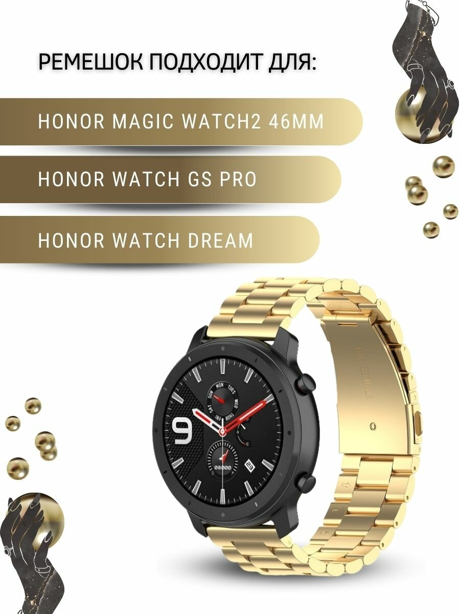 Ремешок для часов Honor, для часов Хонор, металлический, шириной 22 мм, золотистый интересное: