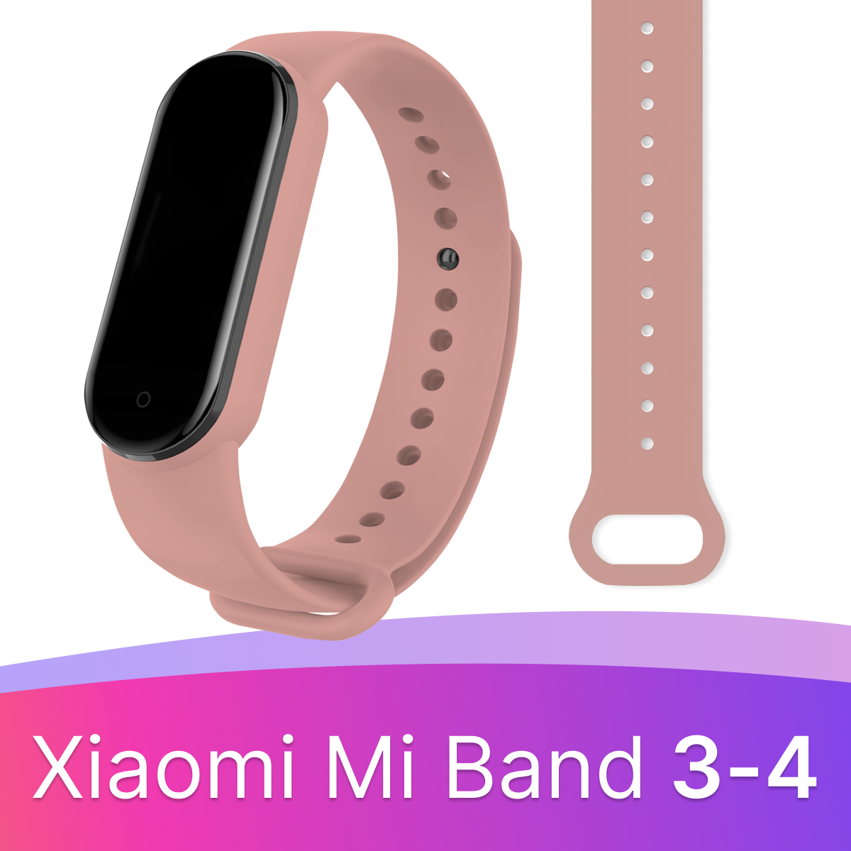 Купить Силиконовый ремешок для смарт часов Xiaomi Mi Band 3 и 4 / Спортивный сменный браслет на фитнес трекер Сяоми Ми Бэнд 3 и 4 / Розовый