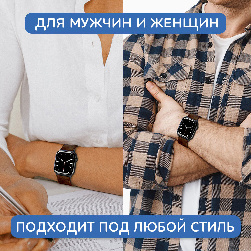 Кожаный ремешок для Apple Watch 42-44-45 мм, браслет из натуральной кожи для часов Apple Watch series 1-7 SE, коричневый (DarkBrown3) интересное: