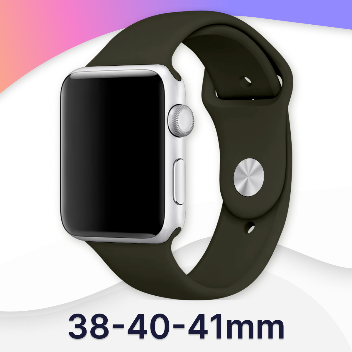 Купить Силиконовый ремешок для Apple Watch 38-40-41 mm, Series 1-9, SE / Сменный браслет (Sport Band) для смарт часов Эпл Вотч 38-41 мм (Dark Olive S)