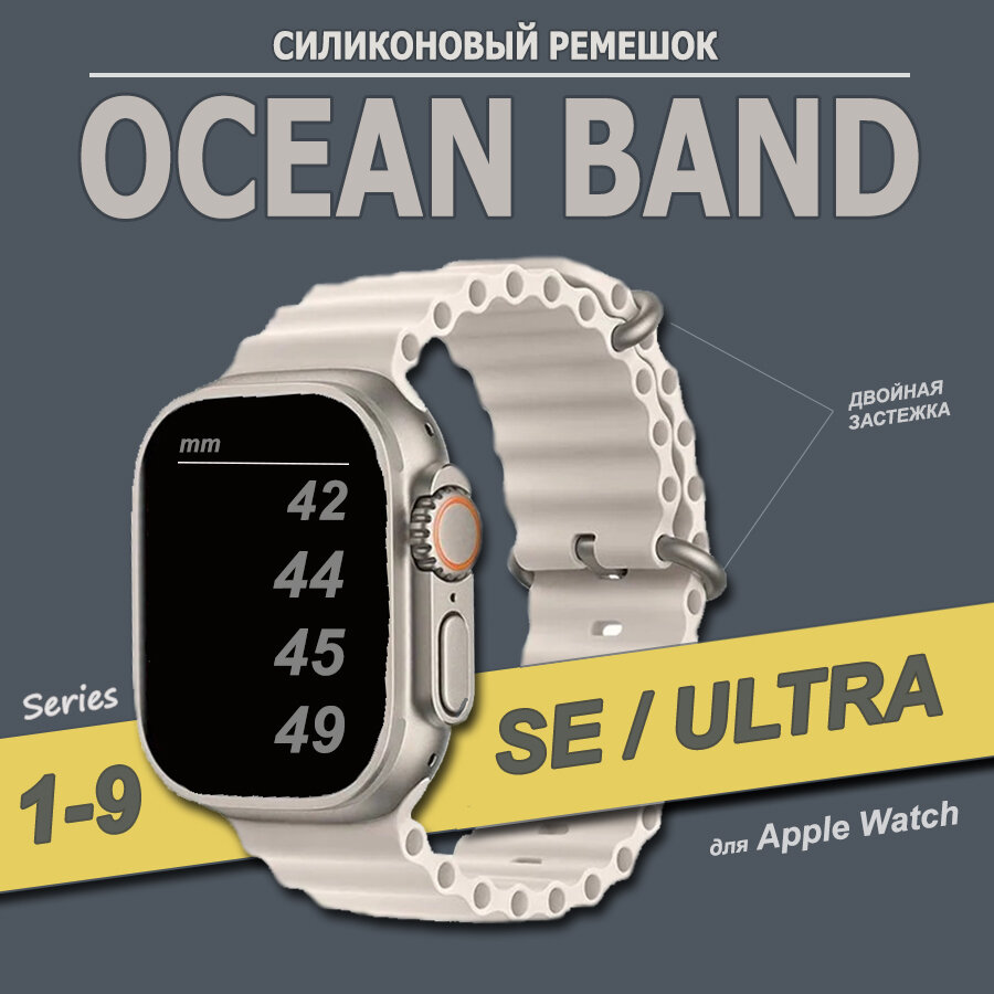 Купить Ремешок силиконовый Ocean Band для Apple Watch Ultra 49mm, Series 1-9, SE, 42/44/45mm, Бежевый