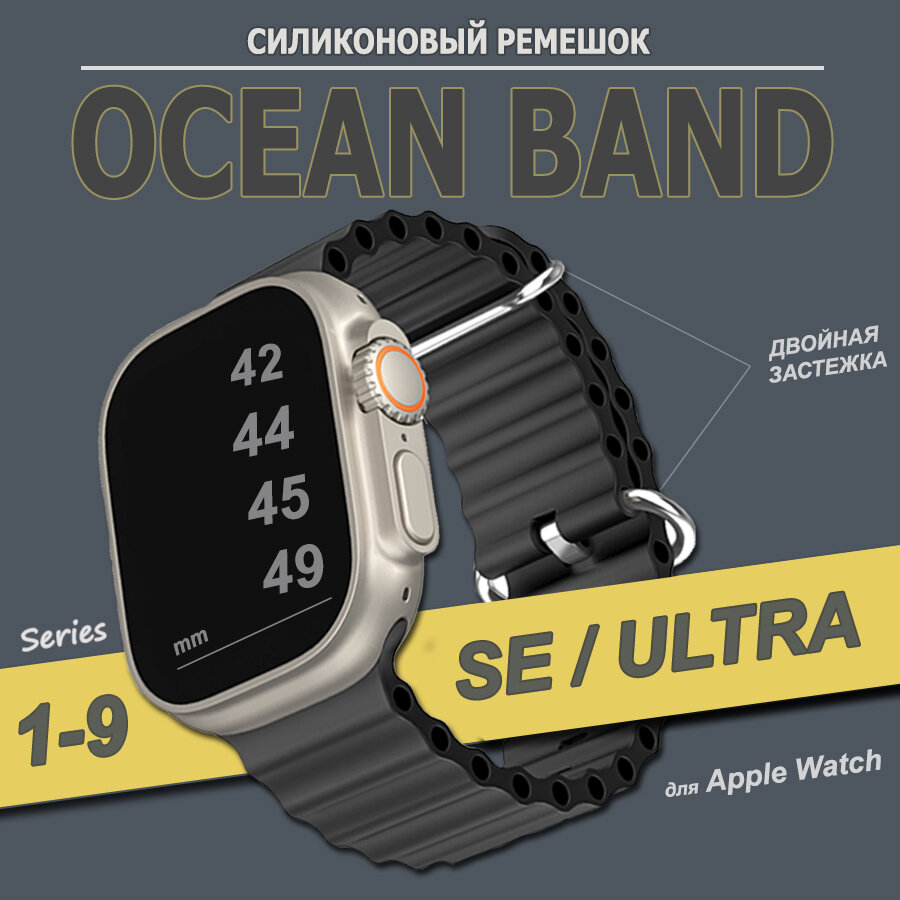 Купить Ремешок для Apple Watch Ultra 49mm, Series 1-9, SE, 42/44/45mm, Ocean Band, Черный