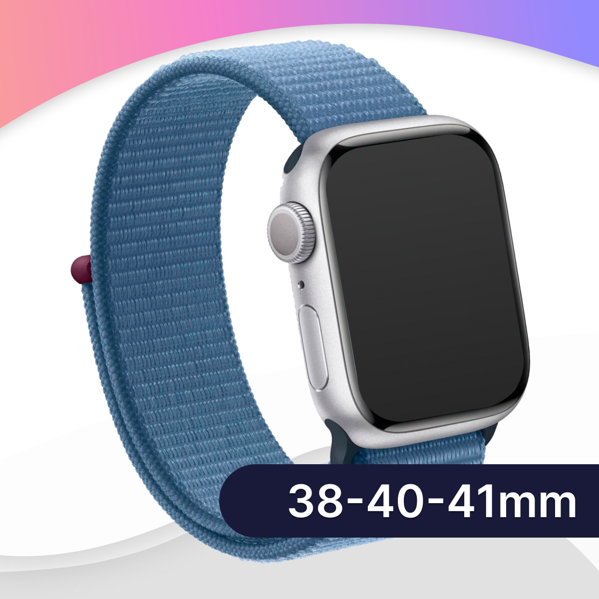 Купить Нейлоновый ремешок для часов Apple Watch 38-40-41 mm, Series 1-9, SE / Тканевый фитнес браслет на липучке Эпл Вотч 38-40-41 мм (Голубой)