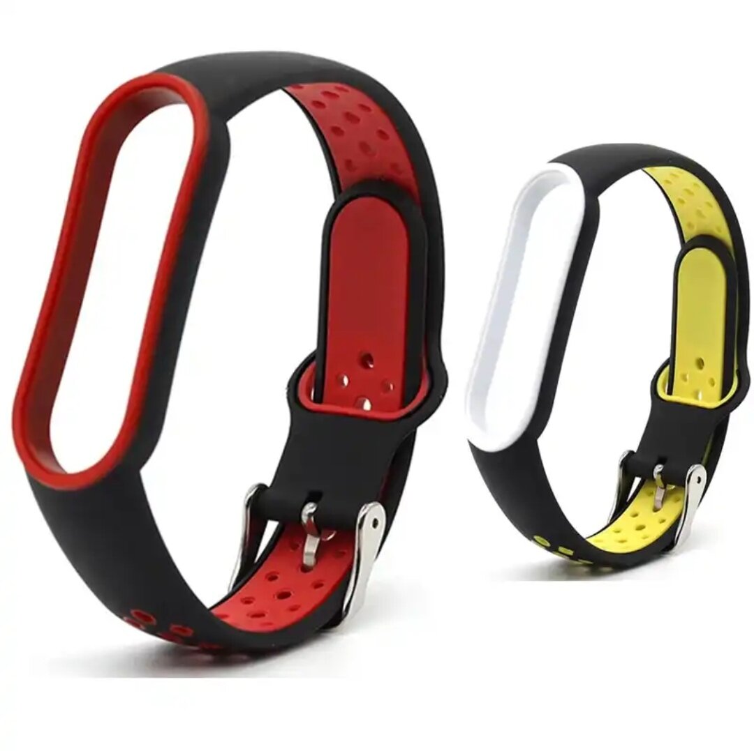 Ремешок для Xiaomi Mi Band 5,6,7/Браслет для смарт-часов/фитнес-браслет/Спортивный сменный силиконовый ремешок/Черный-желтый