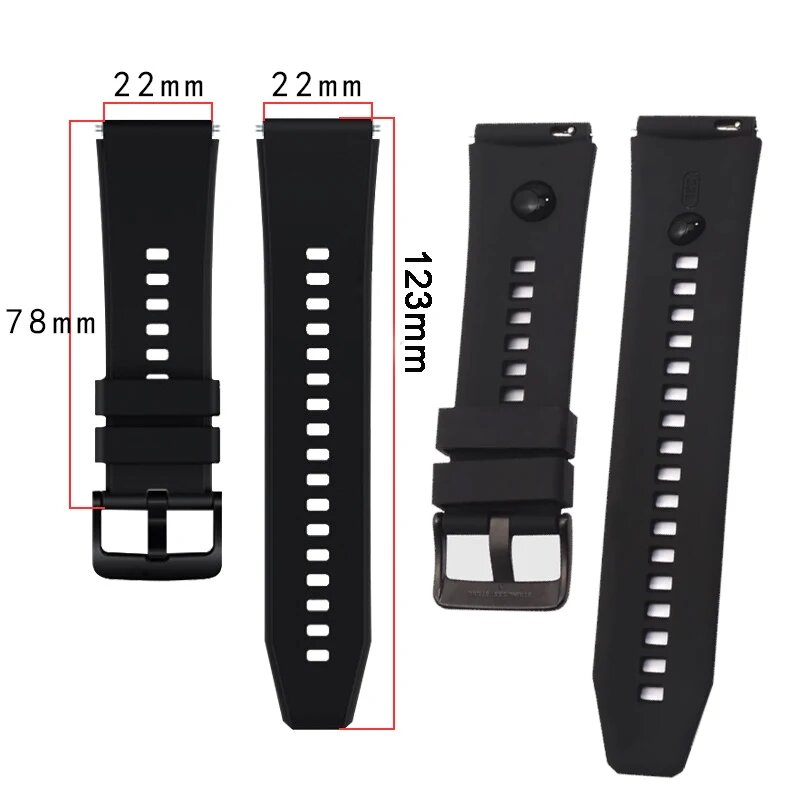 Ремешок для смарт-часов, фитнес-браслета универсальный 22 мм силиконовый браслет с пряжкой Xiaomi Samsung Huawei Honor, черный