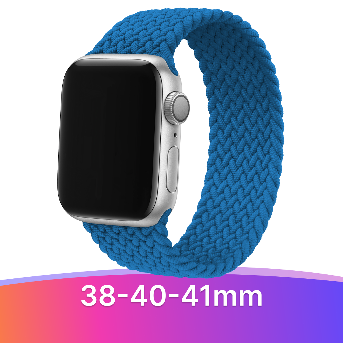 Купить Нейлоновый плетеный ремешок для Apple Watch Series 1-9 и SE 38-41 mm / Тканевый монобраслет (15 см) для Эпл Вотч Серии 1-9 и СЕ 38-41 мм / Синий