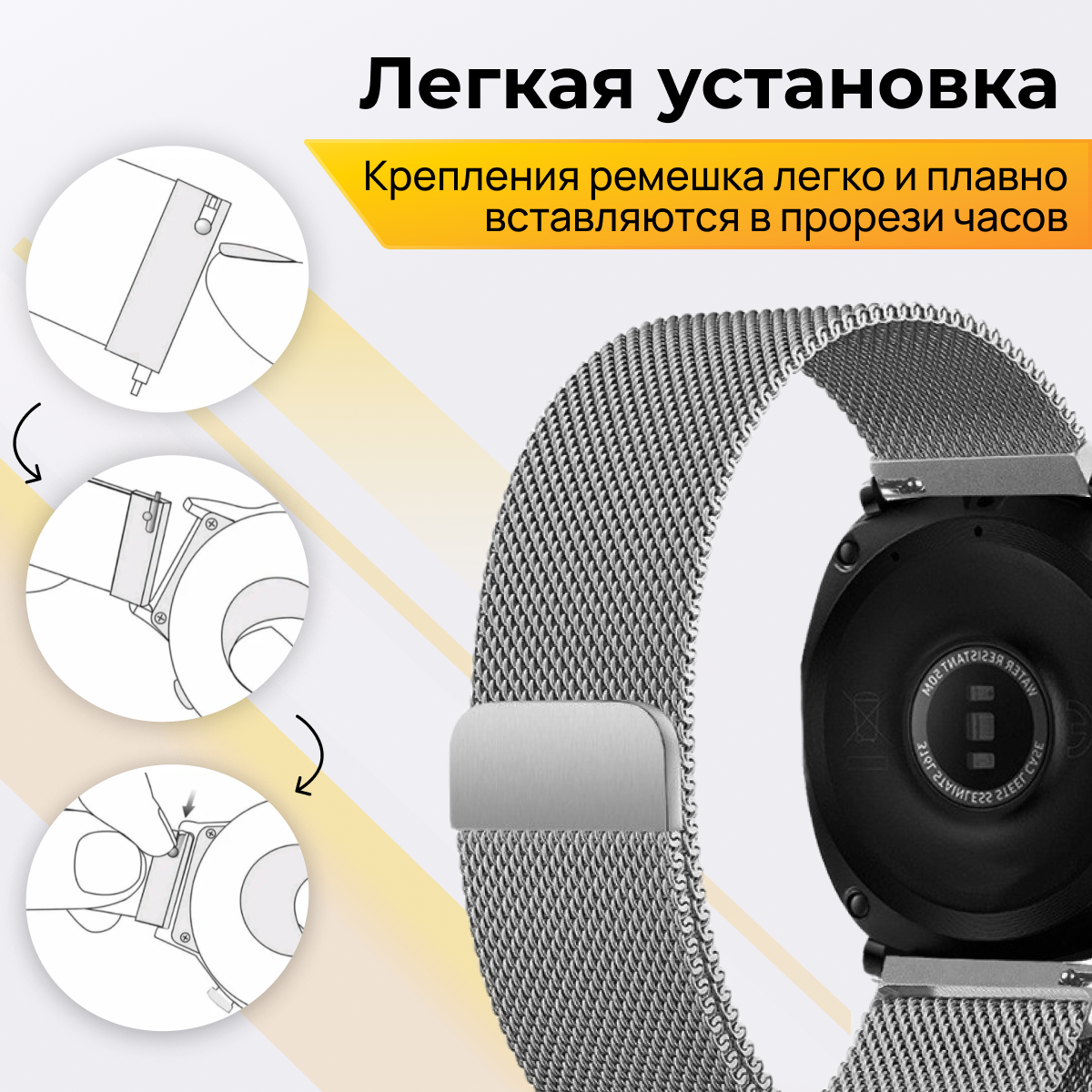 СохранитьМеталлический ремешок для Samsung Galaxy Watch, Gear Sport, Huawei Watch, Honor, Amazfit, Garmin миланская петля / Браслет для часов 20 мм / Перламутр интересное: