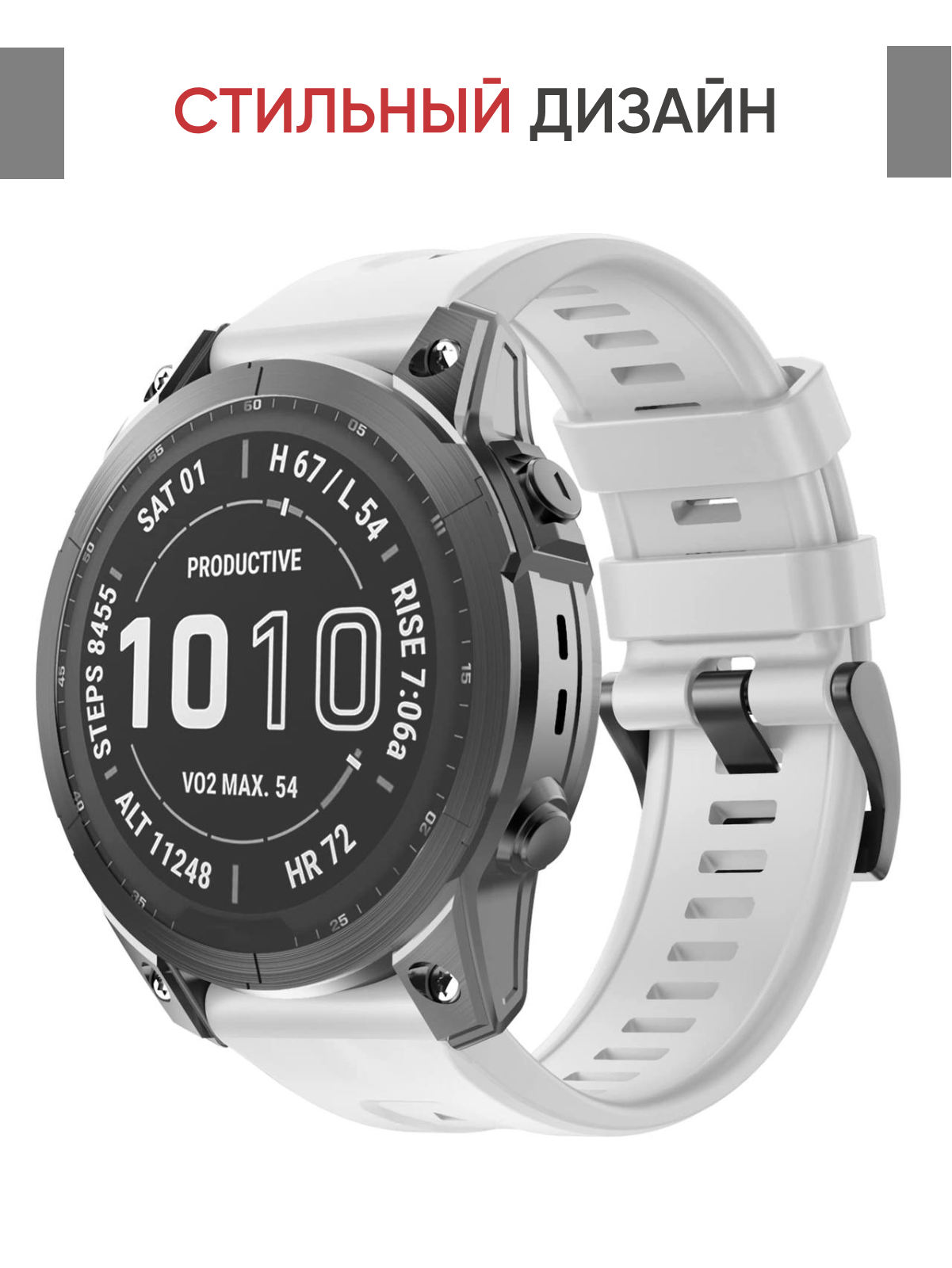 Силиконовый ремешок на часы Garmin Fenix 7X, 6X, 5X, 3, Garmin Enduro, Tactix Delta, быстросъемный QuickFit 26 мм с гравировкой премиум качество белый