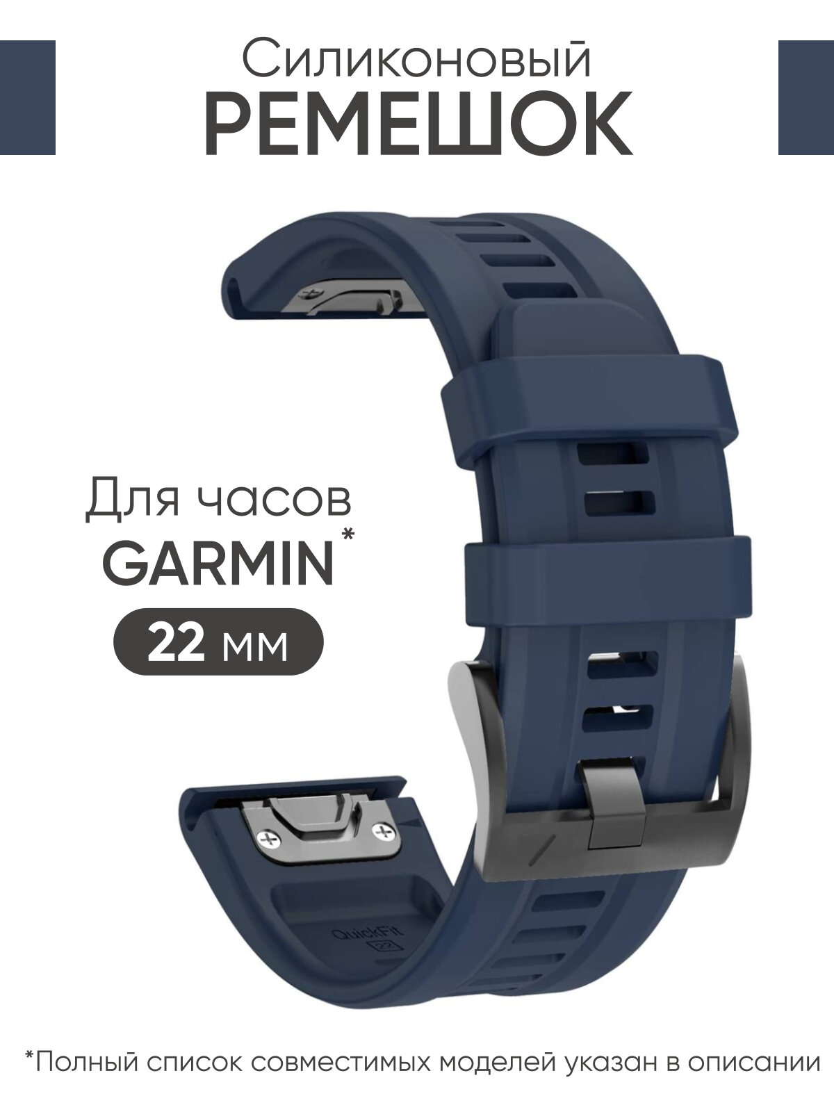 Купить Силиконовый ремешок на часы Garmin Fenix 7, 6, 5 / Epix / Instinct / Garmin Forerunner 945, 935, 745, быстросъемный QuickFit 22 мм с гравировкой синий