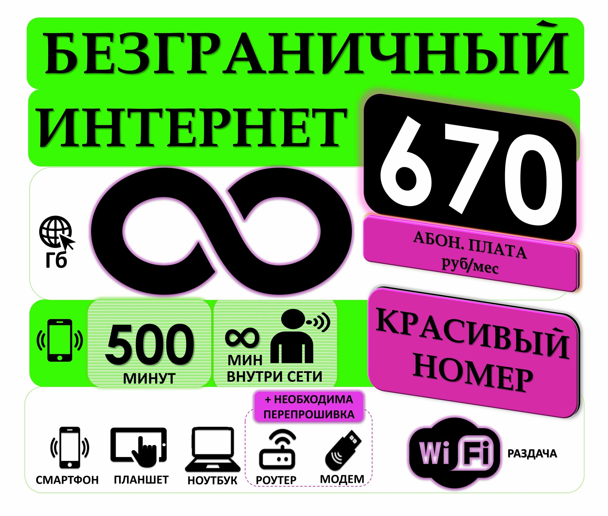 Сим-карта с Раздачей Безлимитного интернета и Красивым номером за 670 рублей в месяц, списывается посуточно. интересное: