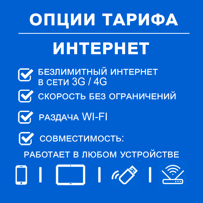 SIM-карта Безлимит по РФ с Wi Fi, для всех устройств, 990 р / в месяц/ сим карта