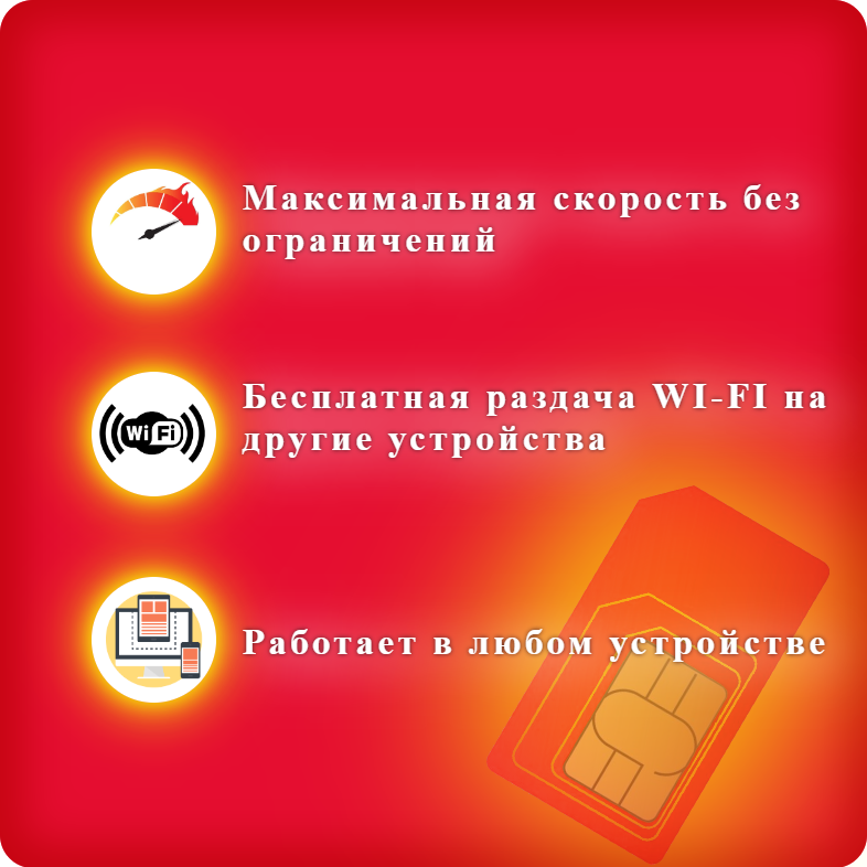 SIM-карта Безлимит по РФ с Wi Fi, для всех устройств, 990 р / в месяц/ сим карта