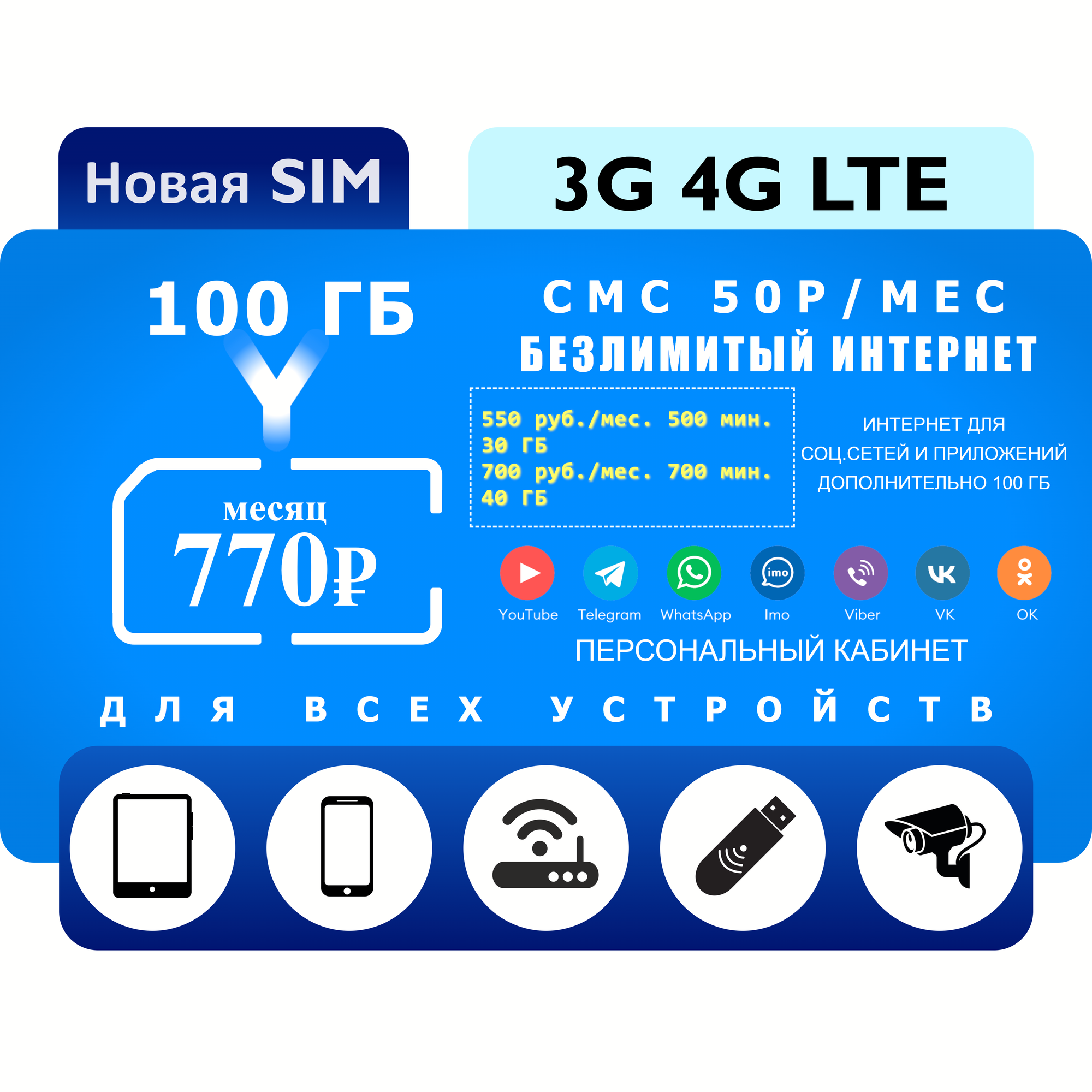 Купить Сим-карта с интернетом в 770 руб./мес. 100 ГБ для всех устройств