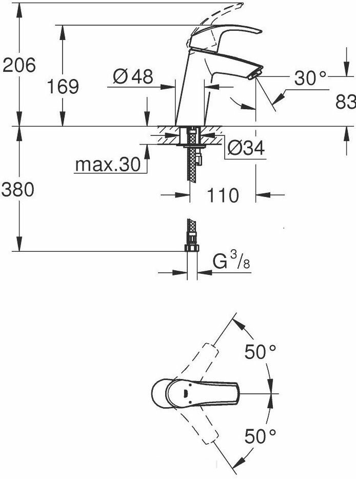 | Угол поворота рукоятки гориз. | 100 градусов |