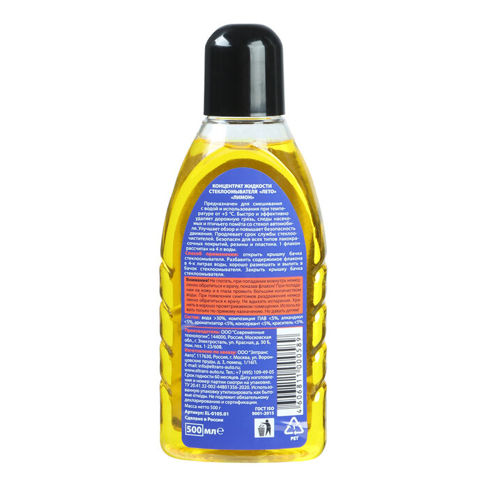 ELTRANS Стеклоомывающая жидкость лето, концентрат, 1:8, лимон, 500 мл интересное: