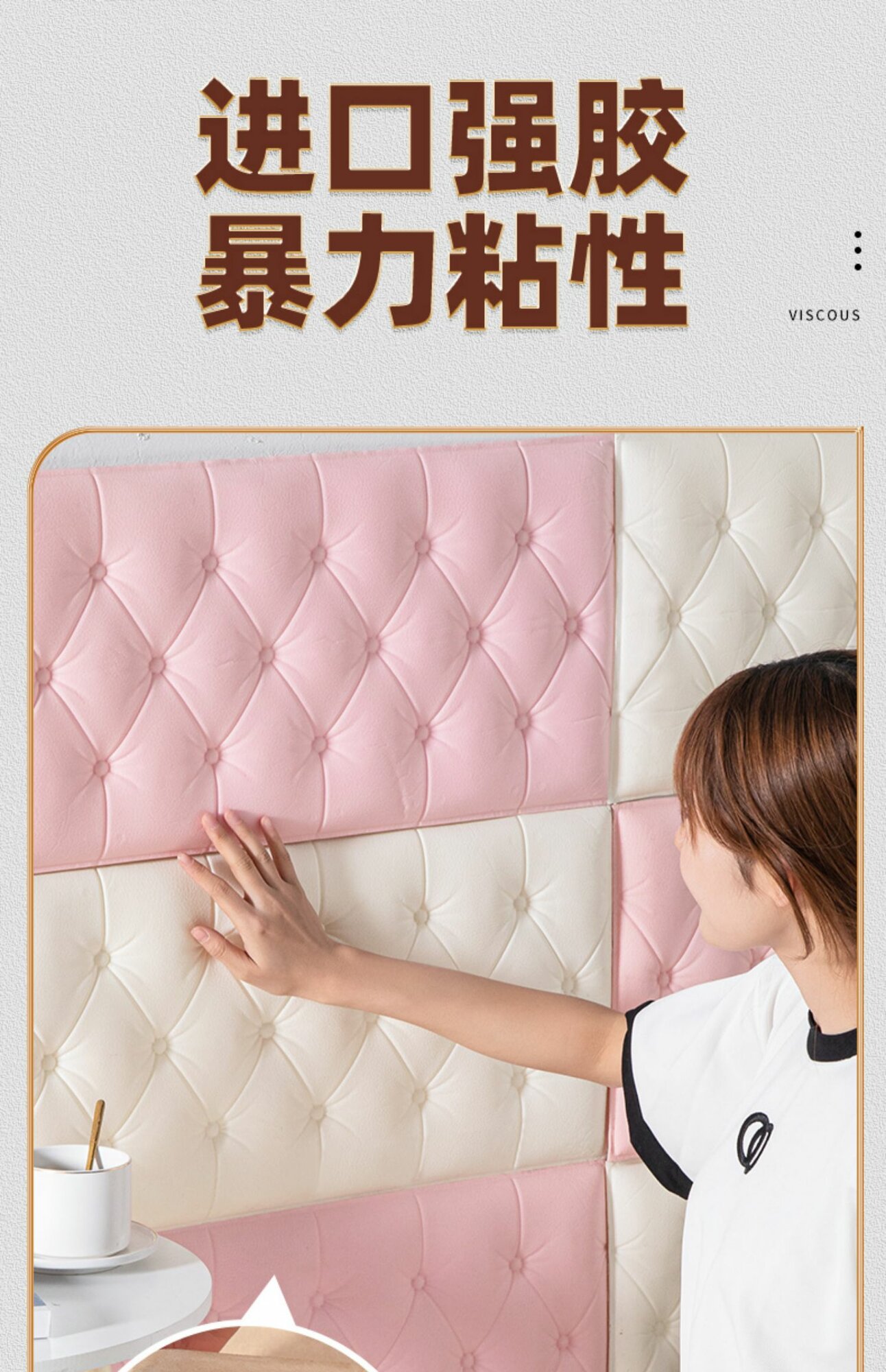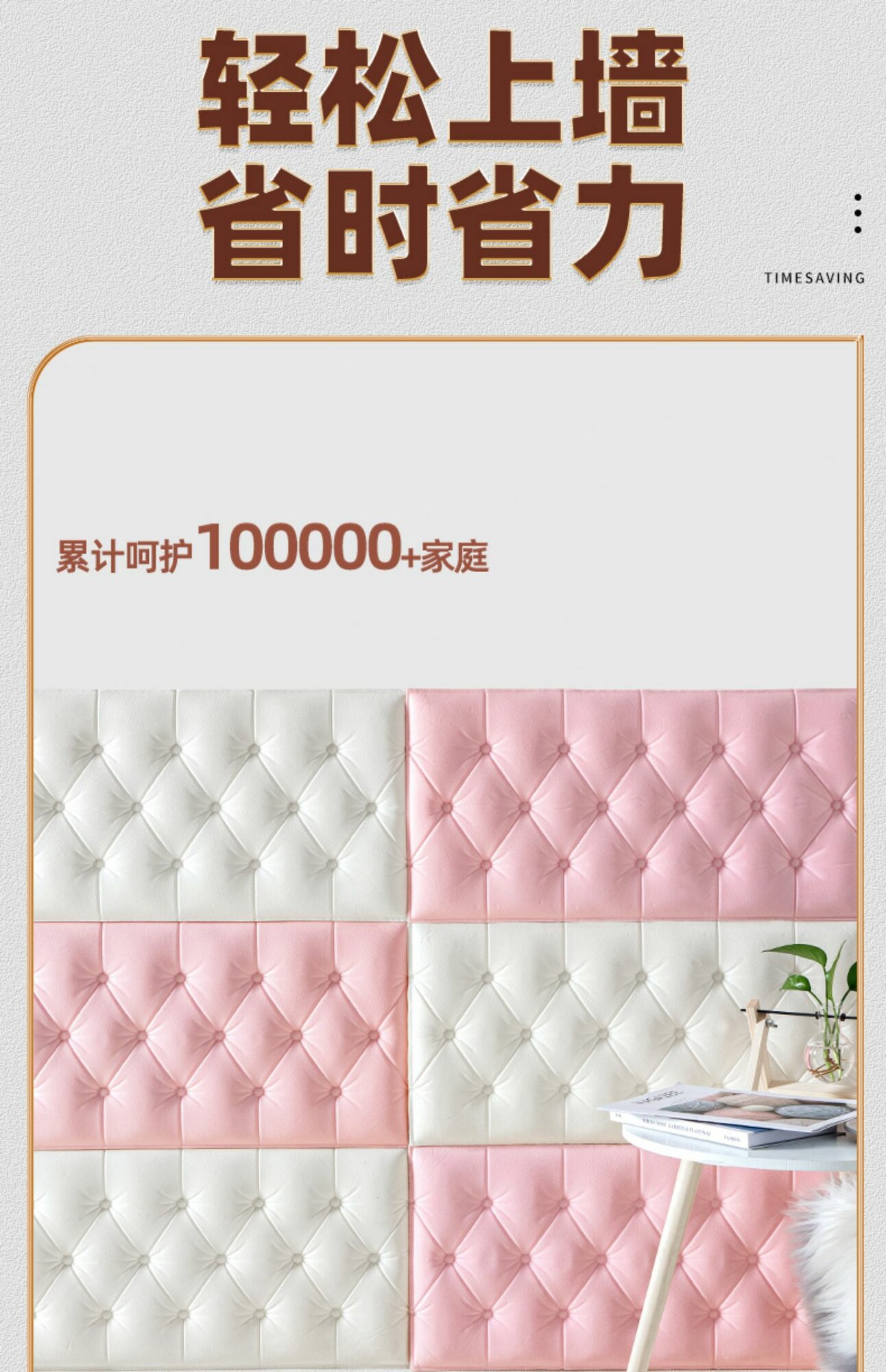 Панель стеновая из экокожи Latte Angel светлый бежевый 30 * 60см 1шт мягкая 3D панель декор для стен и в изголовье кровати