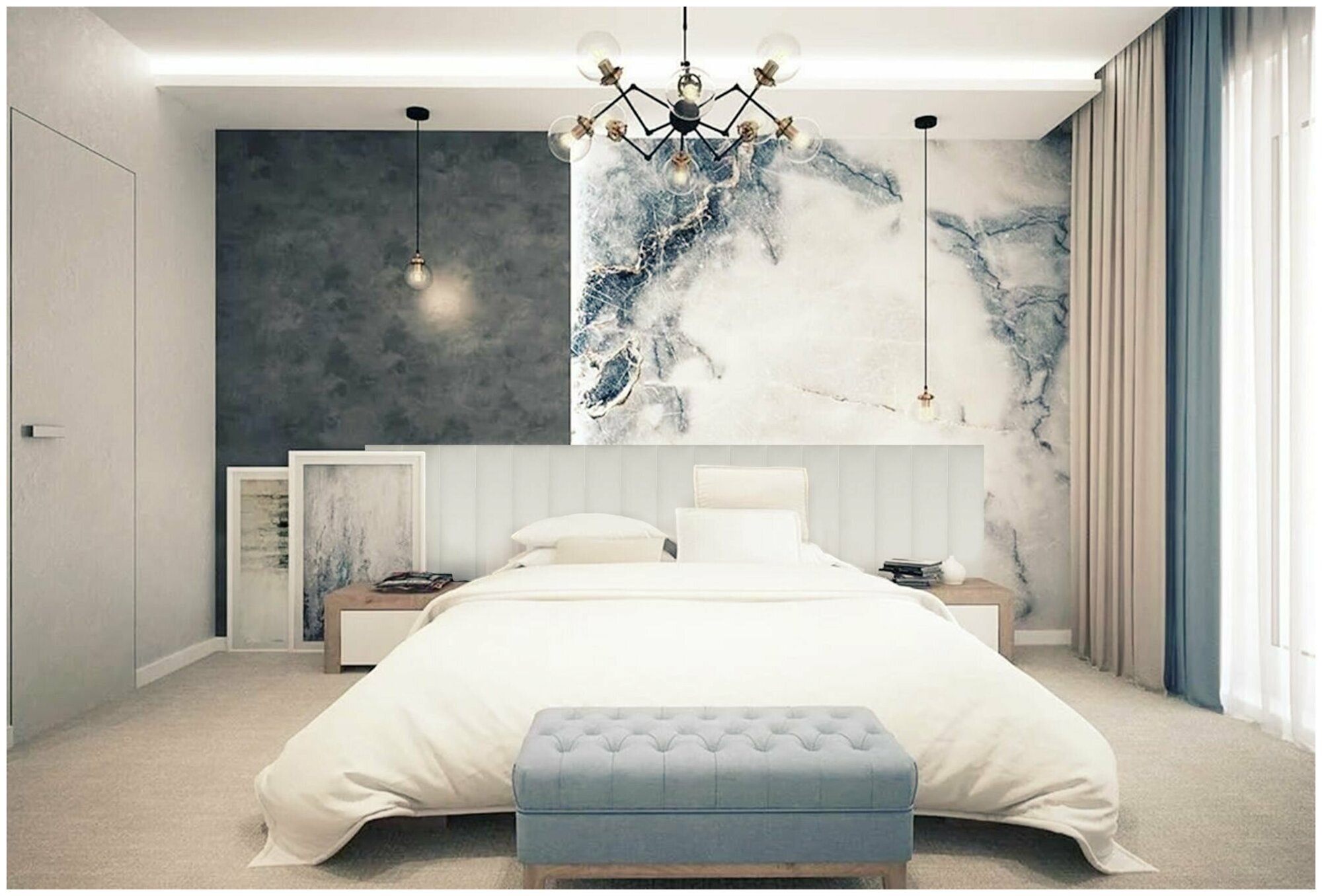 Изголовье для кровати самоклеющаяся мягкая панель для стен (2шт) 20/80см серый мрамор