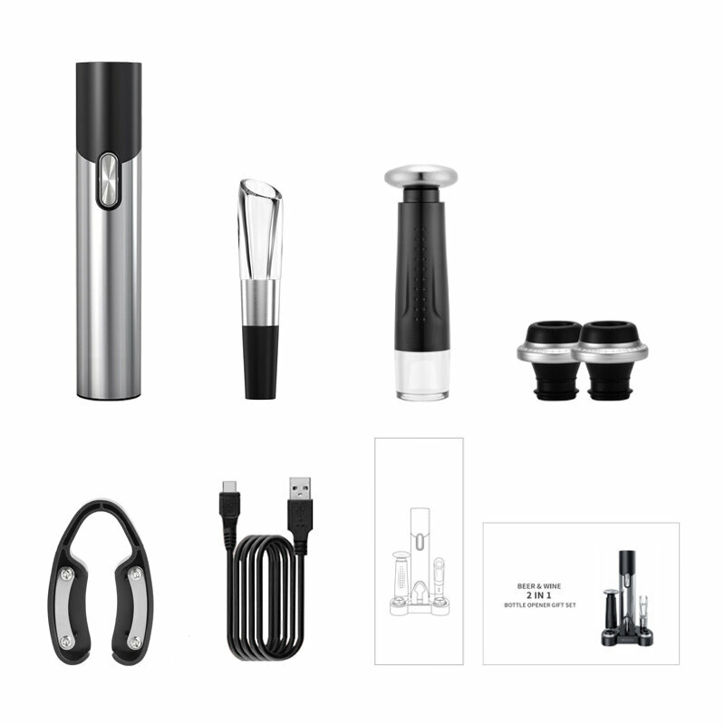 | Дополнительная информация | в наборе: двойной штопор, аэратор, 2 вакуумные пробки , нож для фольги, подставка, кабель USB-C; размеры: 33.3 x 7.1 x 24 см |