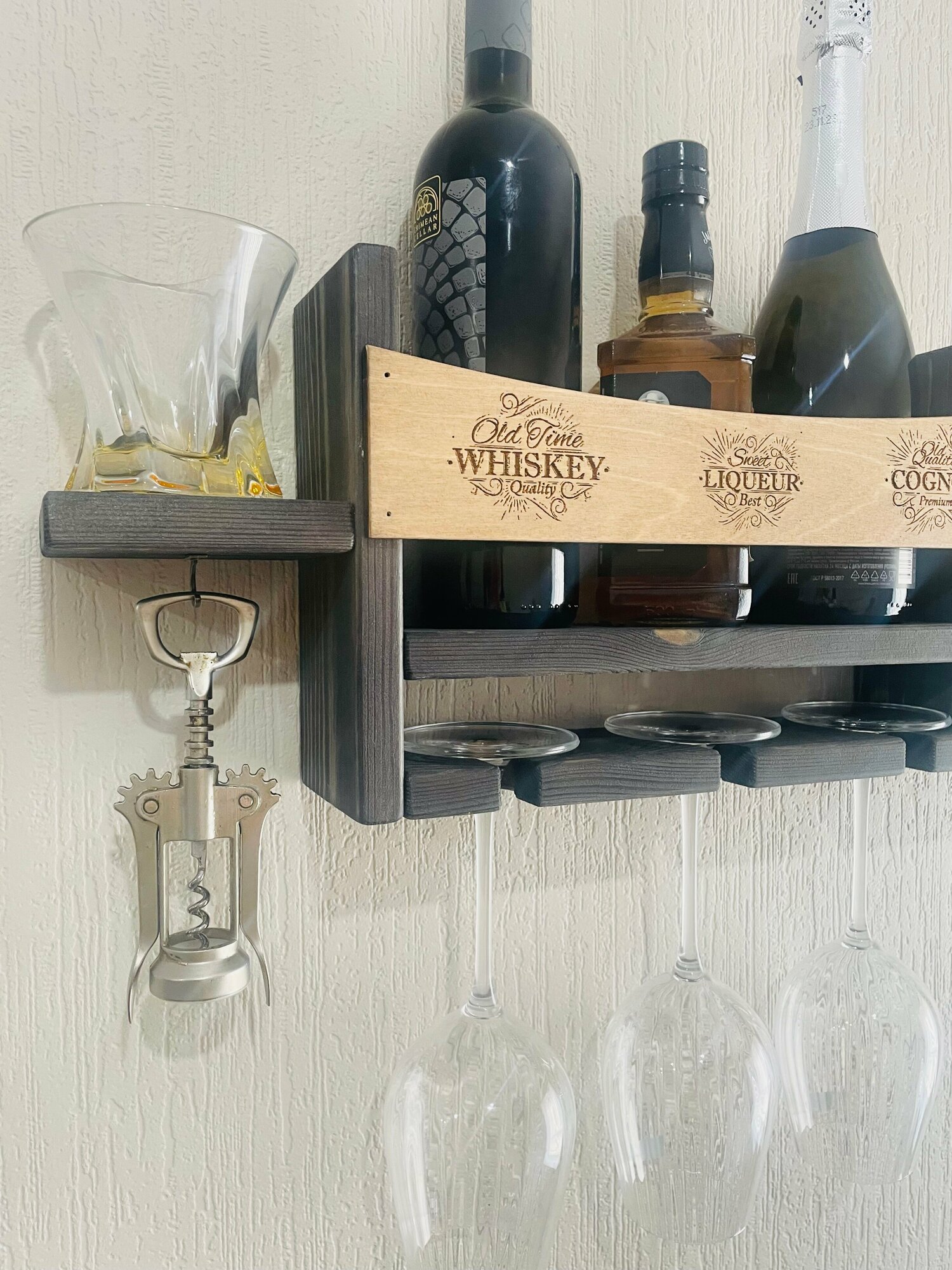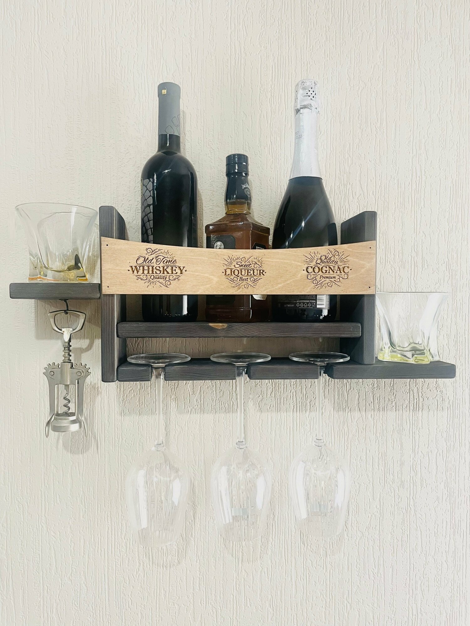 Настенная полка для бутылок вина и бокалов с гравировкой