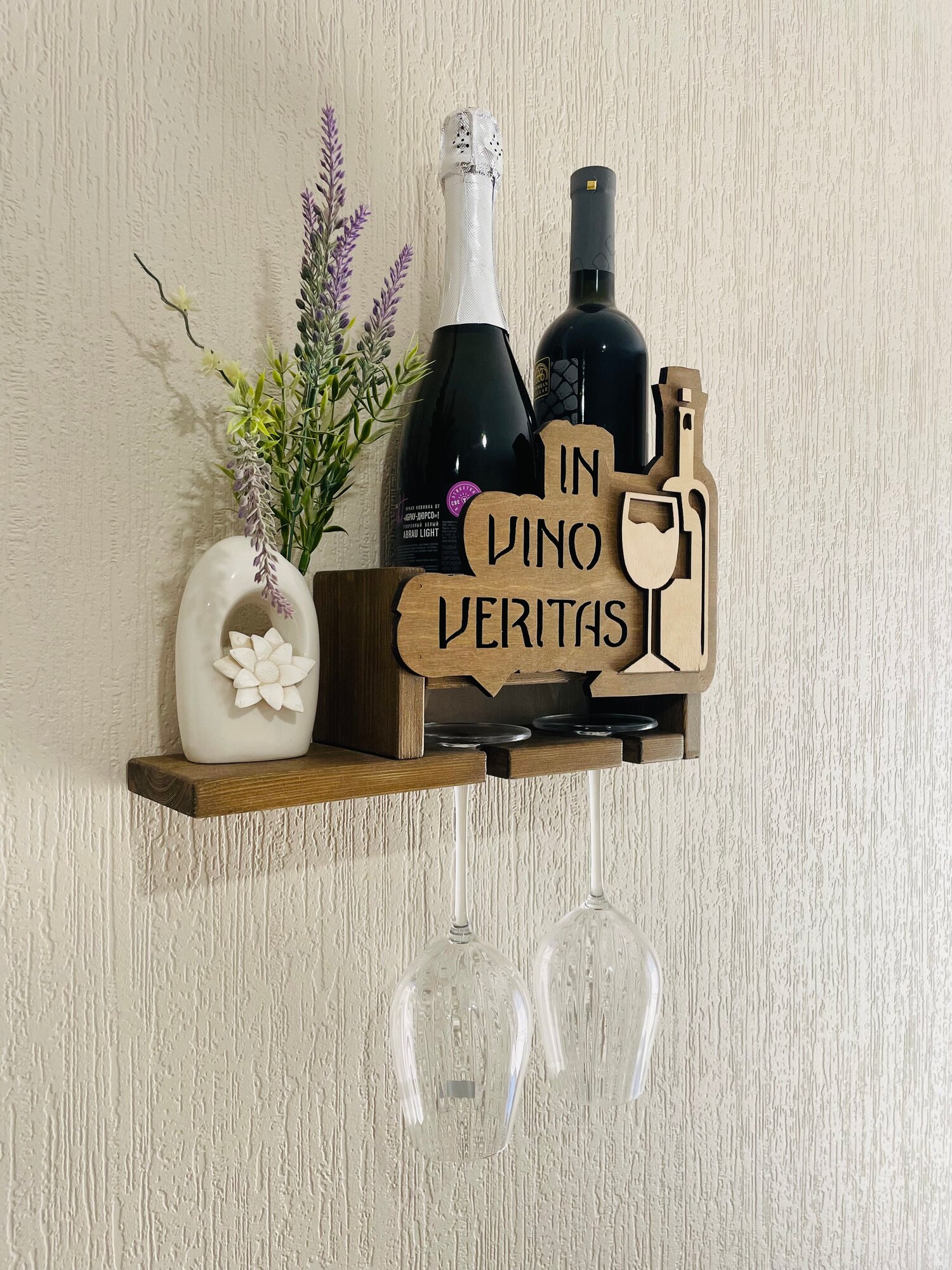 Настенная полка для бутылок вина и бокалов с гравировкой