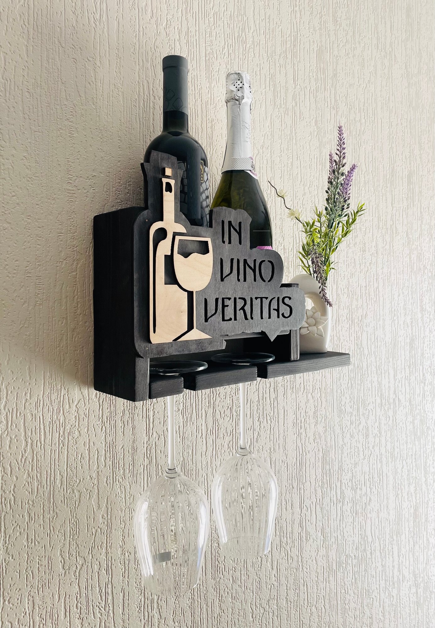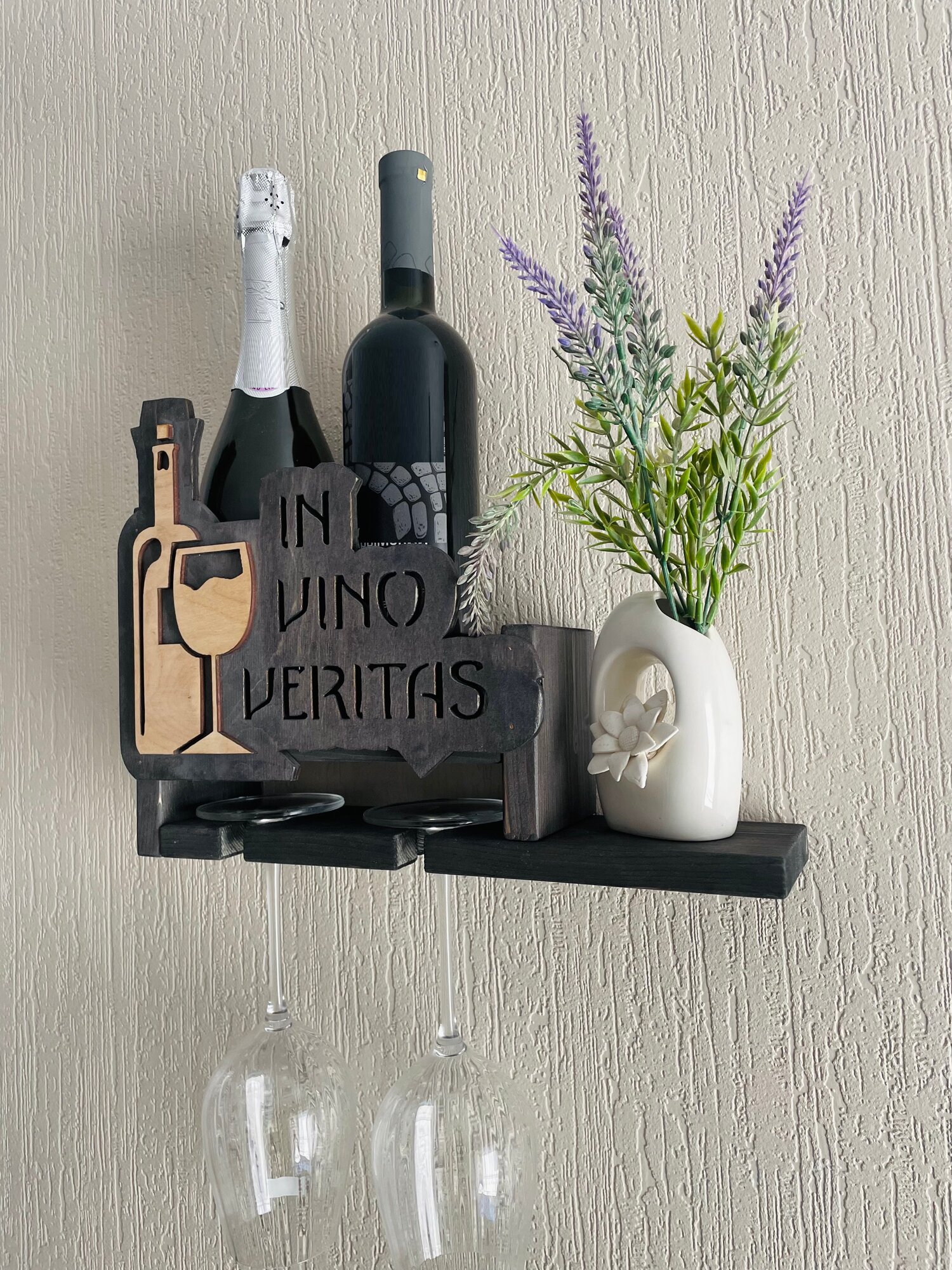 Настенная полка для бутылок вина и бокалов с гравировкой