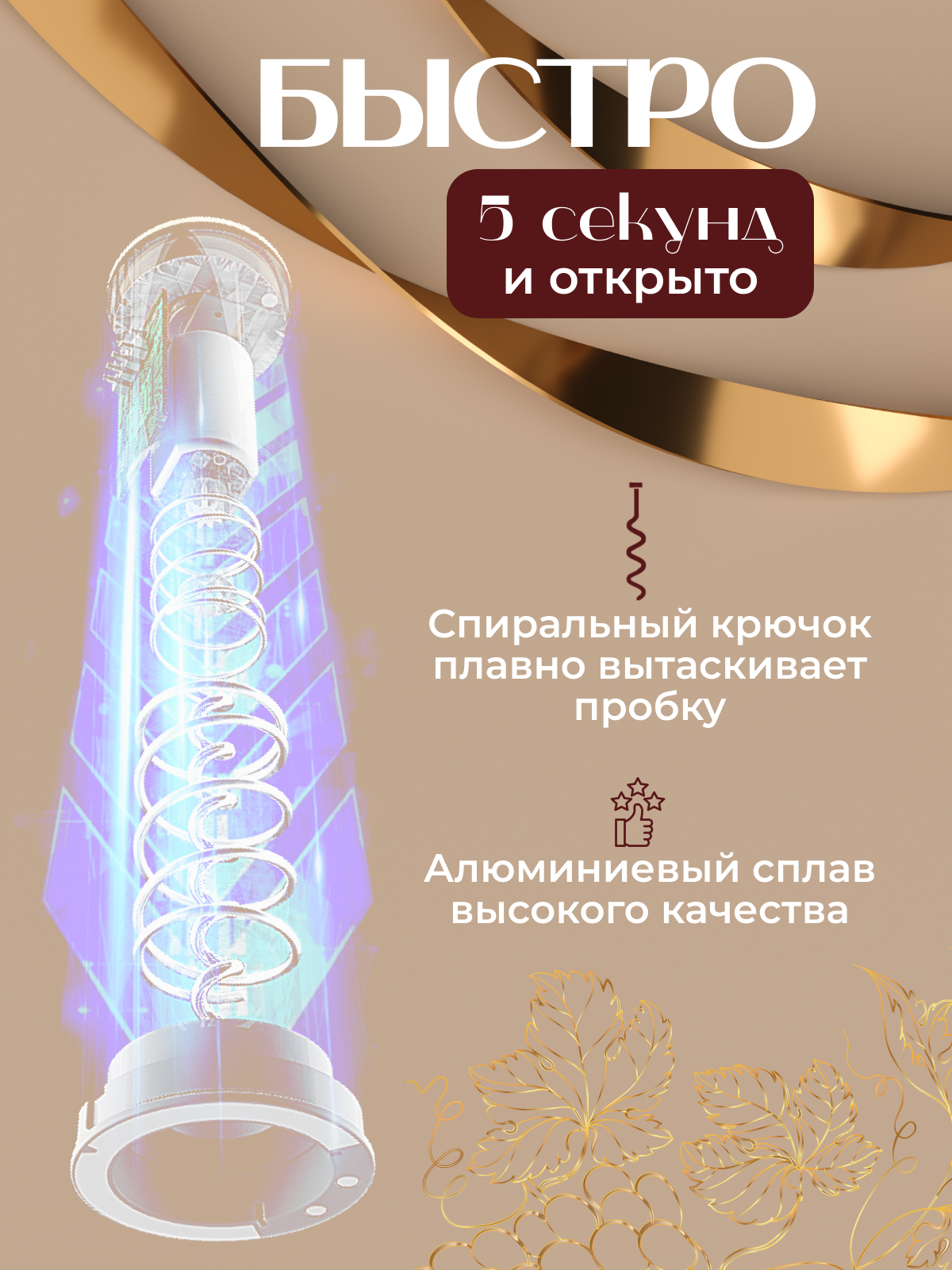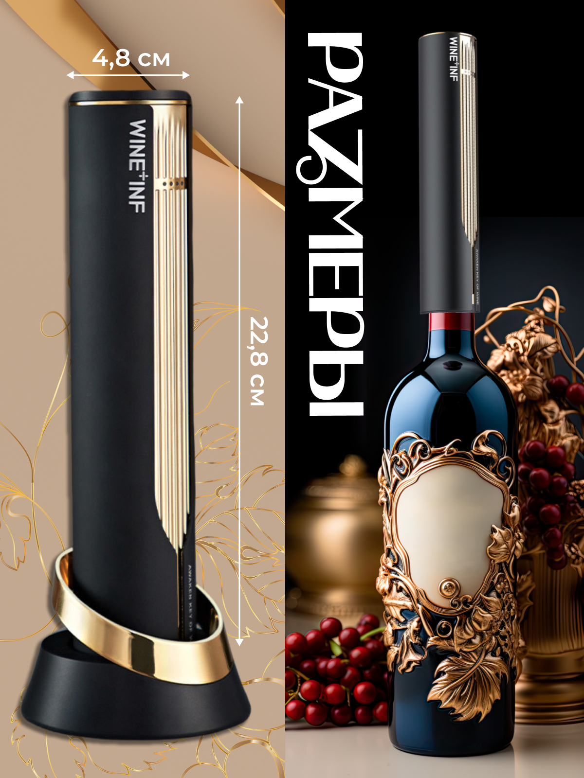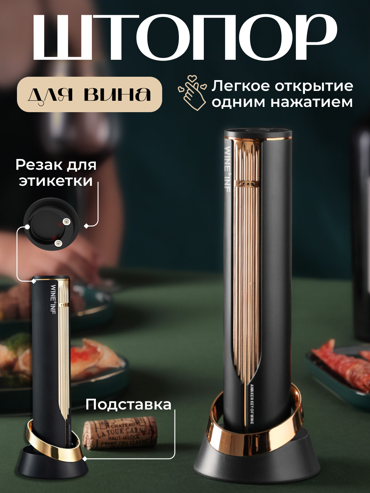 Штопор для вина электрический, чёрно-золотой интересное: