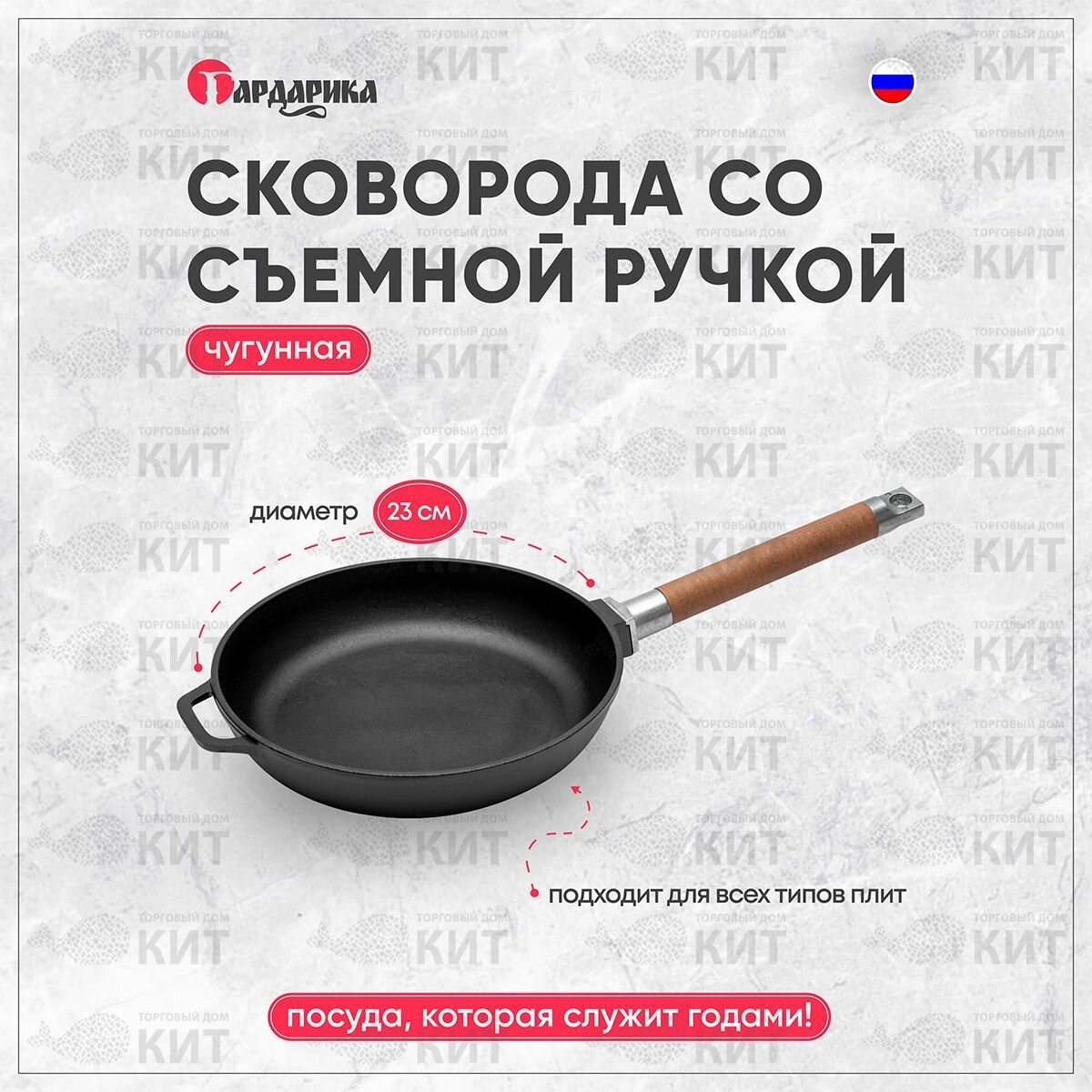 Сковорода чугунная Гардарика, д.22 см, со съемной ручкой, экологически чистый материал