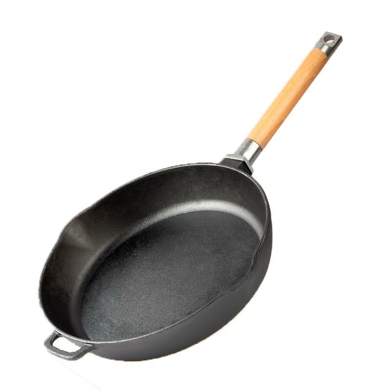 Сковорода чугунная со съемной деревянной ручкой и двумя сливами 24см Гардарика 0224