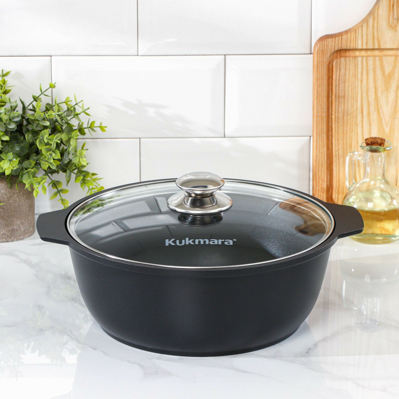 Жаровня KUKMARA, 3 л, d=26, стеклянная крышка, антипригарное покрытие, черный
