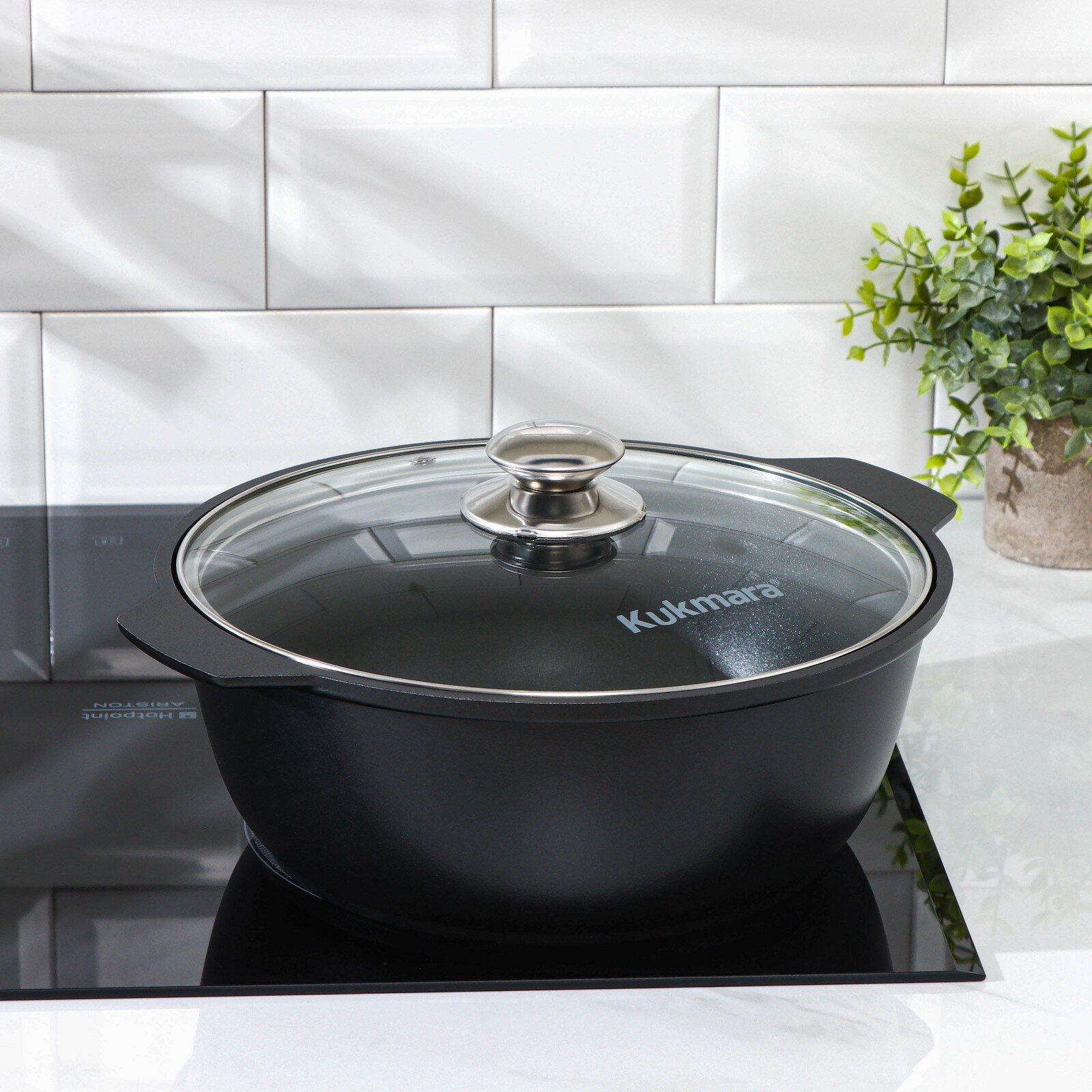 Жаровня KUKMARA, 4 л, d=26, стеклянная крышка, антипригарное покрытие, черный