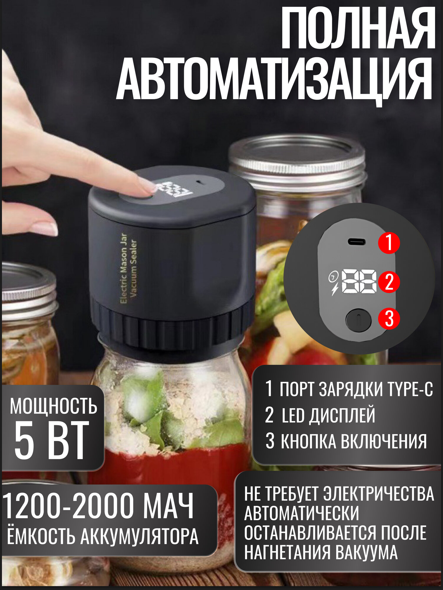 Портативный вакууматор для стеклянных банок, черный интересное: