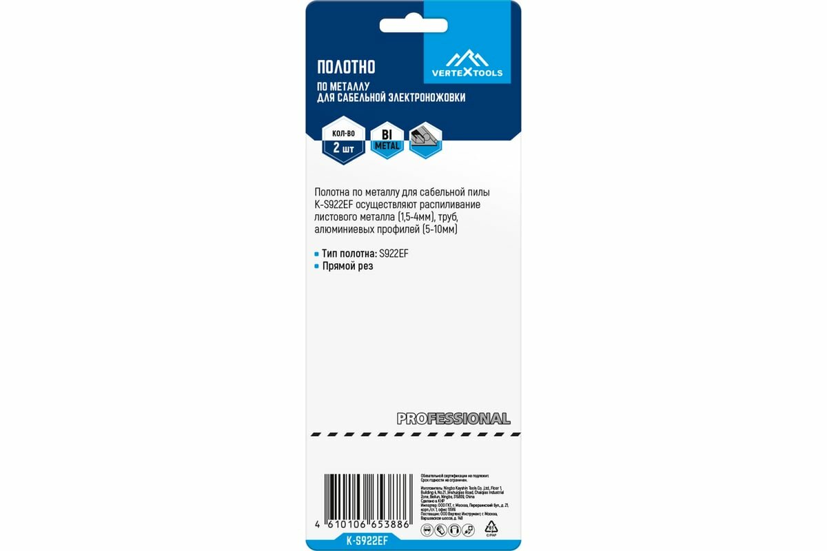 Полотно для сабельной электроножовки 2 шт vertextools K-S922EF интересное: