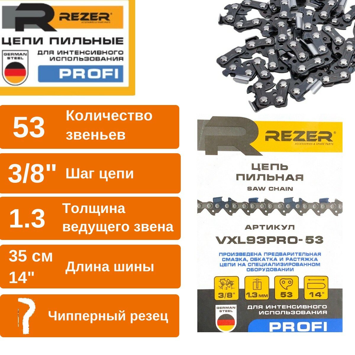 Купить Цепь пильная для пилы ECHO 3500 / 350 / 352 / 353, 53 звена, Длина шины- 14"/35см, Шаг цепи - 3/8", Толщина ведущего звена - 1,3 мм , Зуб - Чиппер, REZER PROFI