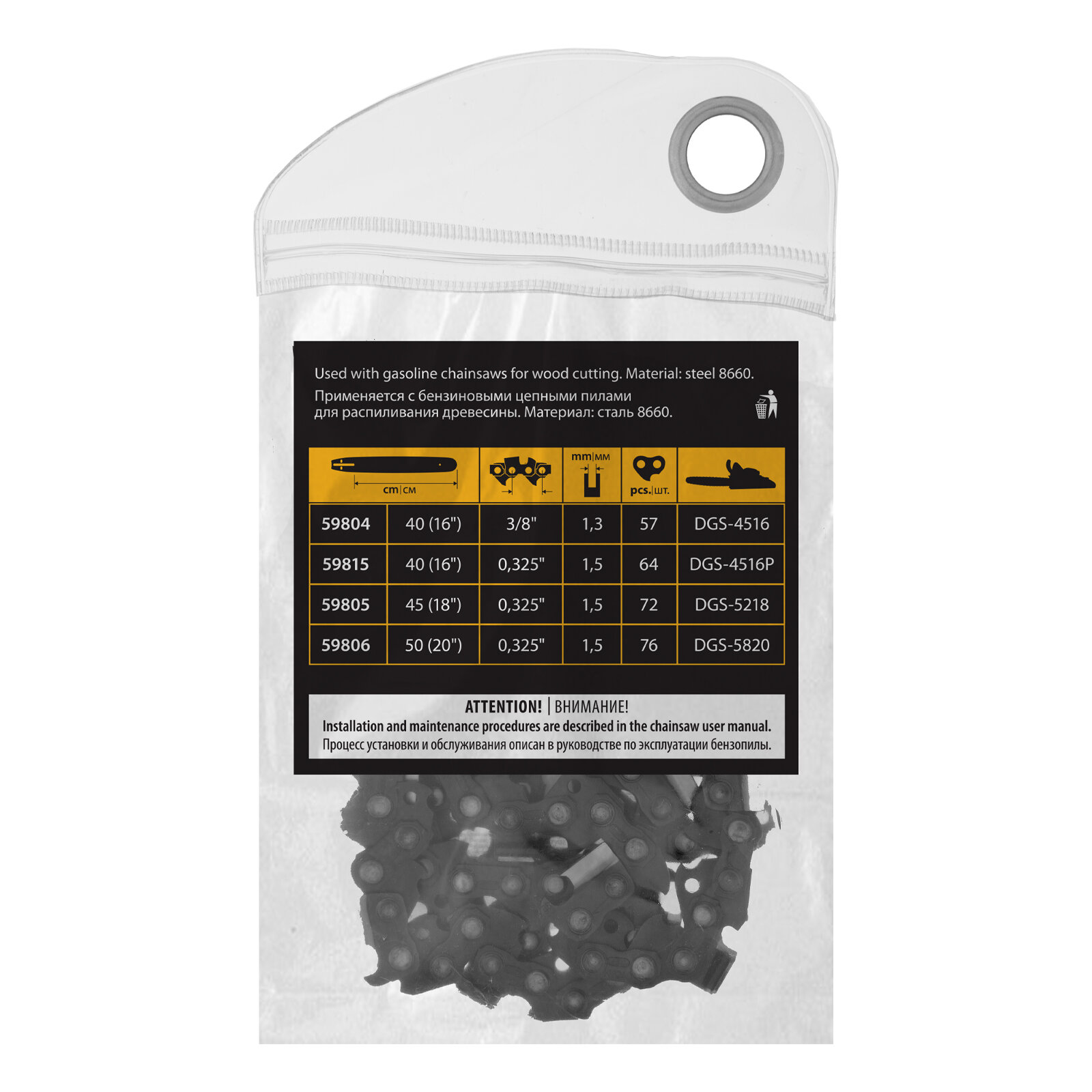Цепь для бензопилы Denzel DGS-4516P, шина 40 см (16"), шаг 0,325", паз 1,5 мм, 64 звена 59815 интересное: