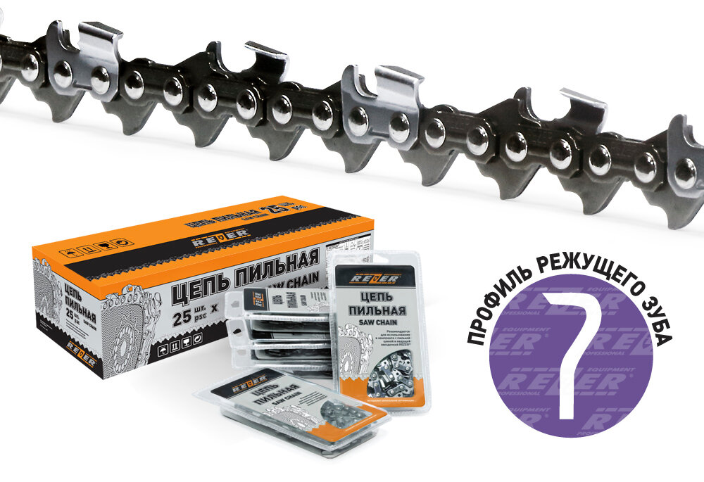 Цепь пильная для пилы, 57 звеньев, Длина шины - 16"/40см, Шаг цепи - 3/8", Толщина ведущего звена- 1,3 мм, Супер Зуб - Чизель, REZER PROFI
