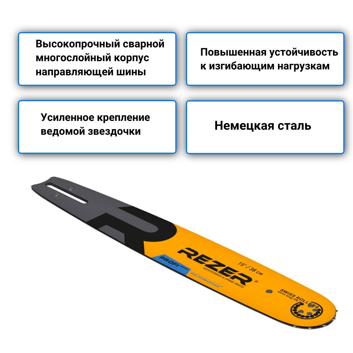 Rezer PROFI 385 L 8 B Шина для бензопилы Husqvarna (Хускварна) 339, 345, 353, 357, 359, 455, 460, Carver 45-15, 64 звена, длина шины 15"( 38 см) , шаг 0.325", ширина паза 1.5 мм