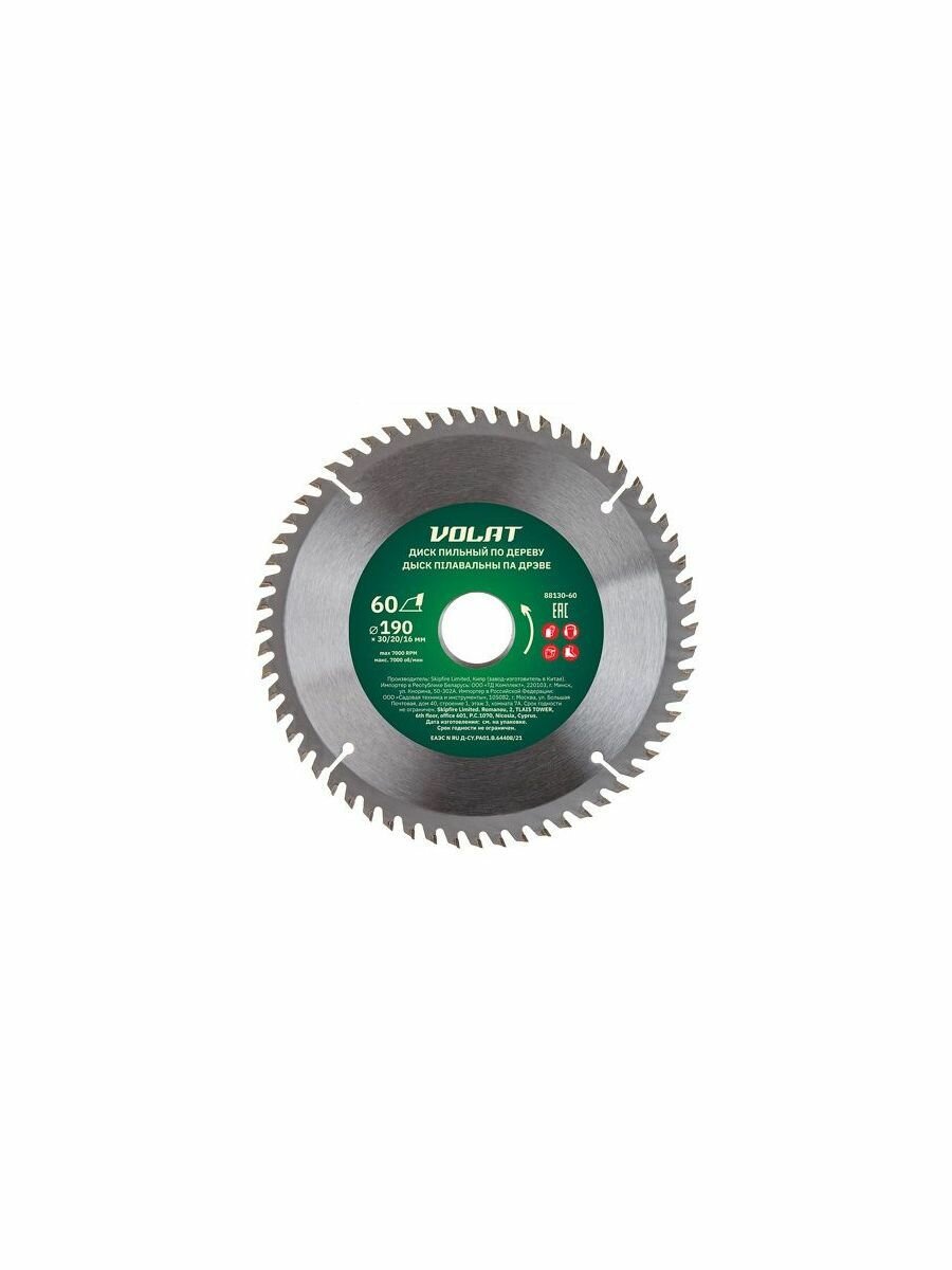 Купить Диск пильный 190х30/20/16 мм 60 зубьев волат по дереву (88130-60)