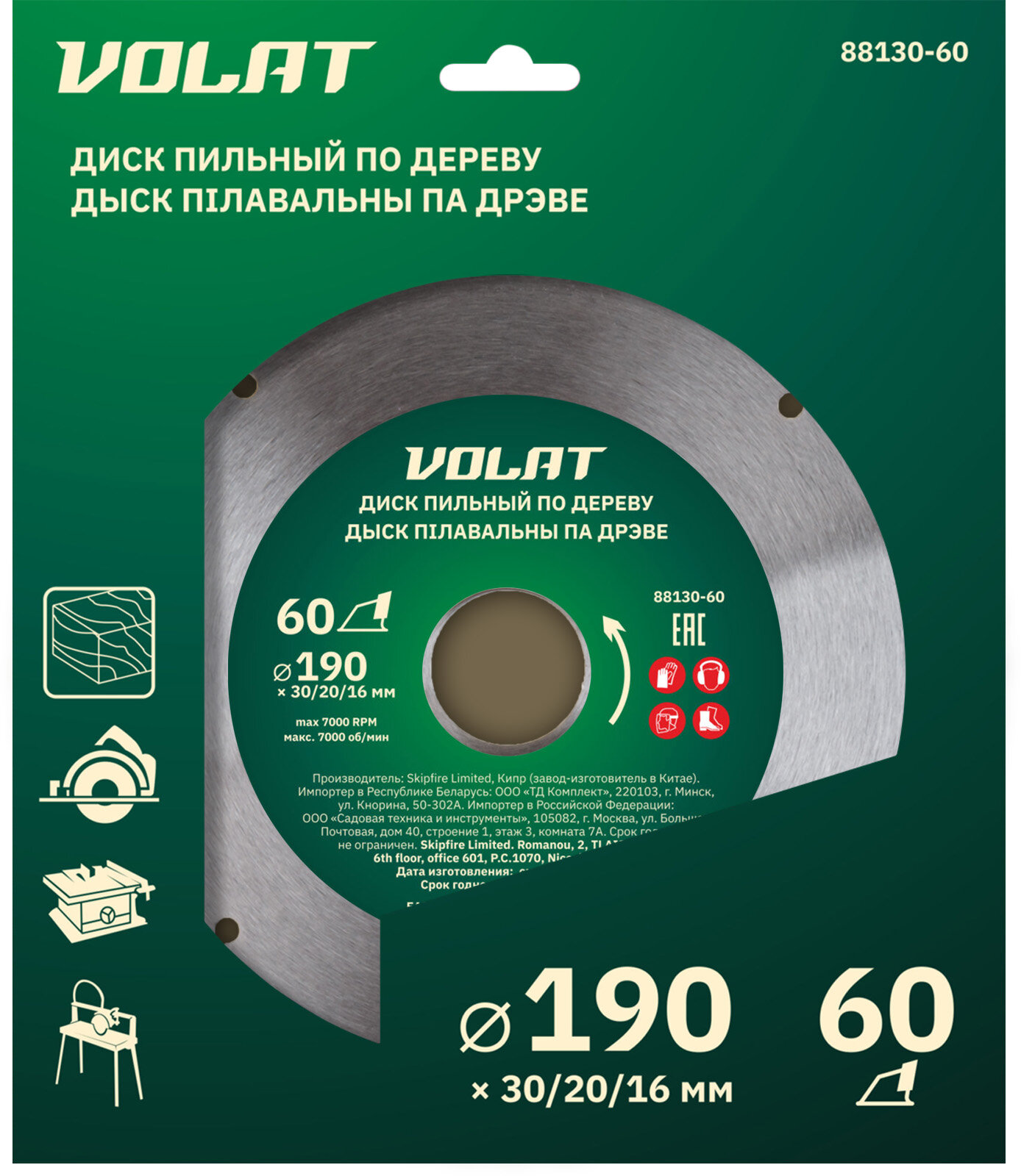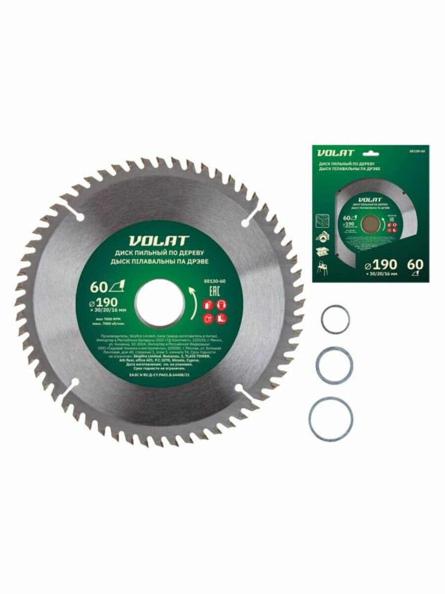 СохранитьДиск пильный 190х30/20/16 мм 60 зубьев волат по дереву (88130-60) интересное: