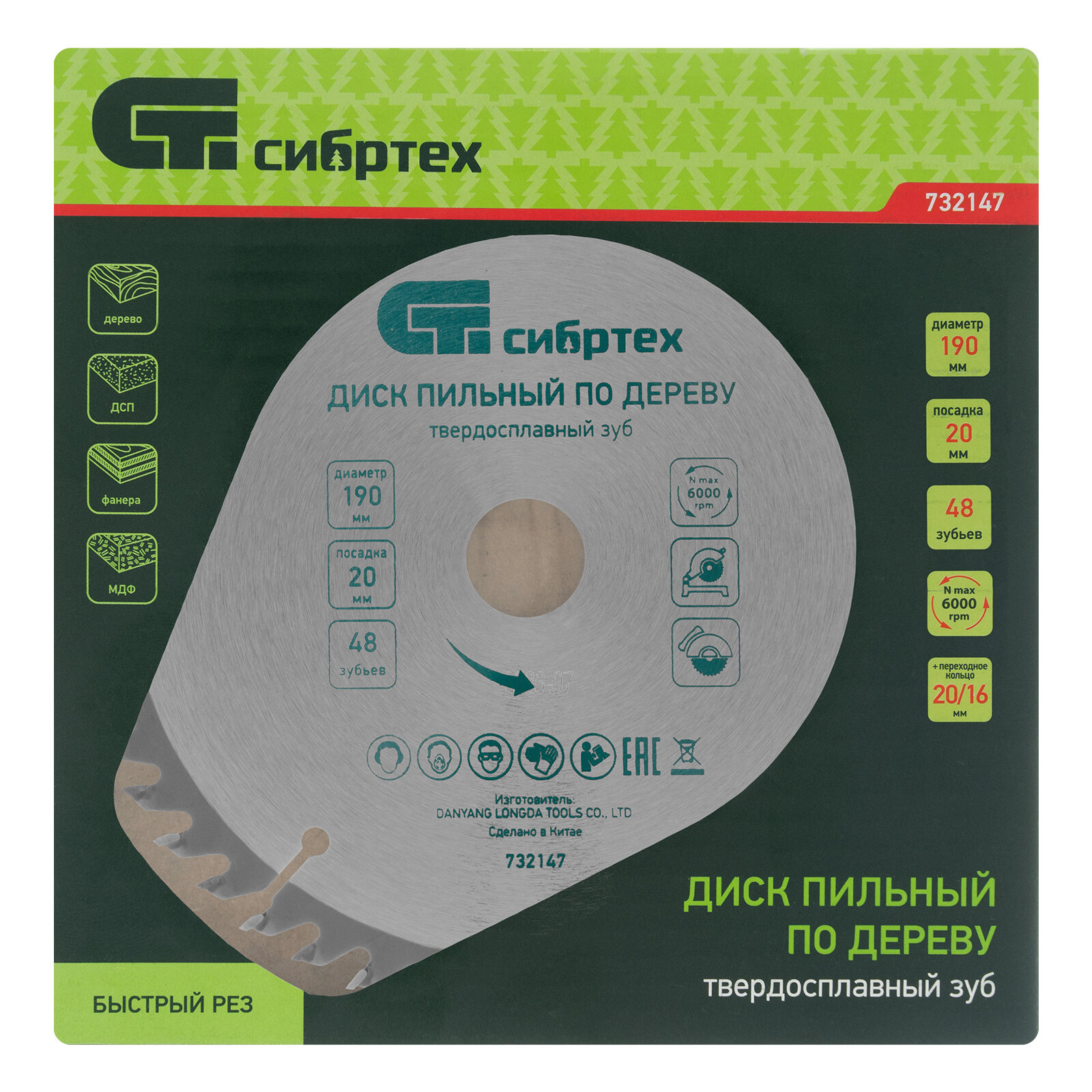 Пильный диск по дереву Сибртех ф190 х 20 мм, 48 зубьев + кольцо 20/16 732147 интересное: