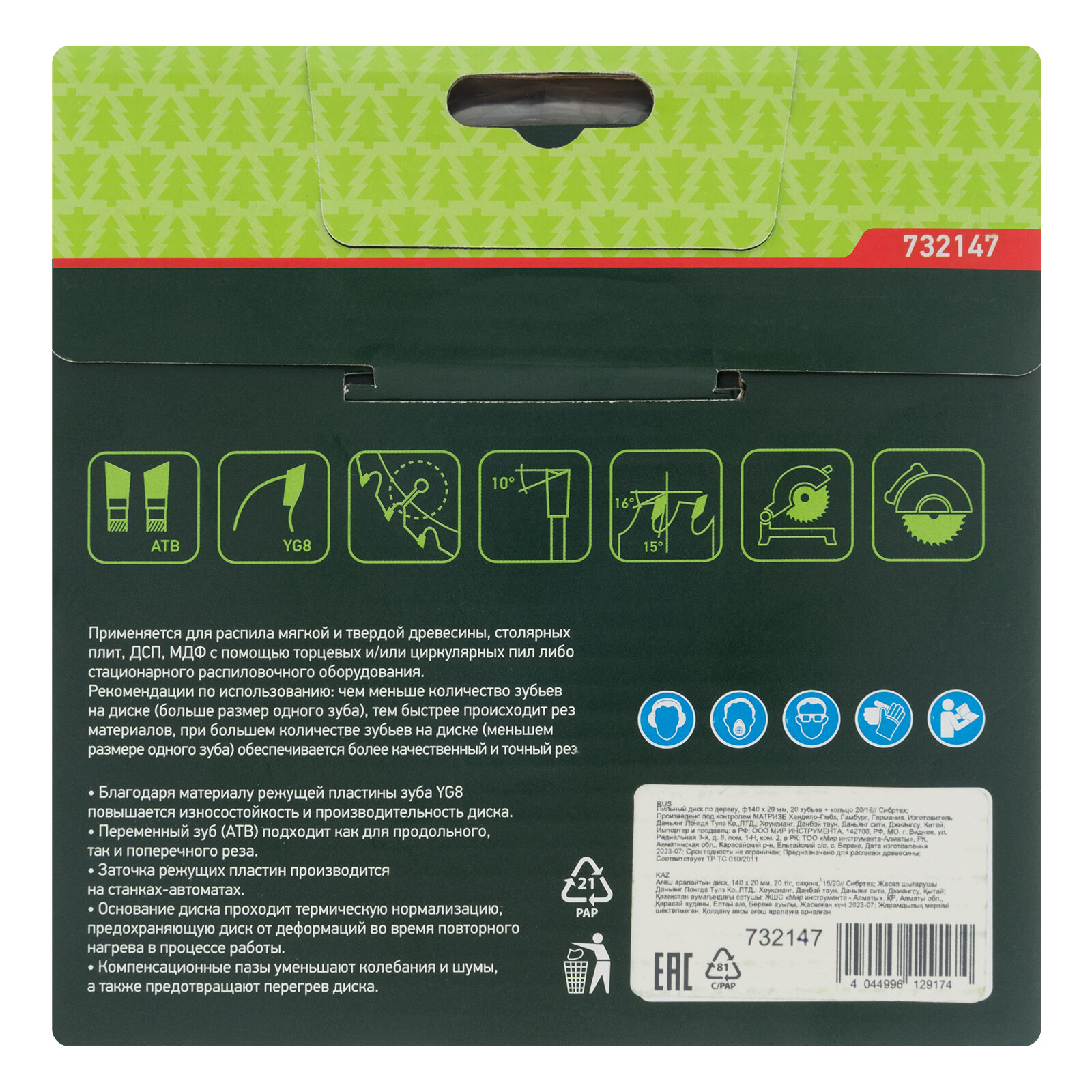 | Дополнительная информация | кольцо 16/20 мм; пильный диск - 1 шт |