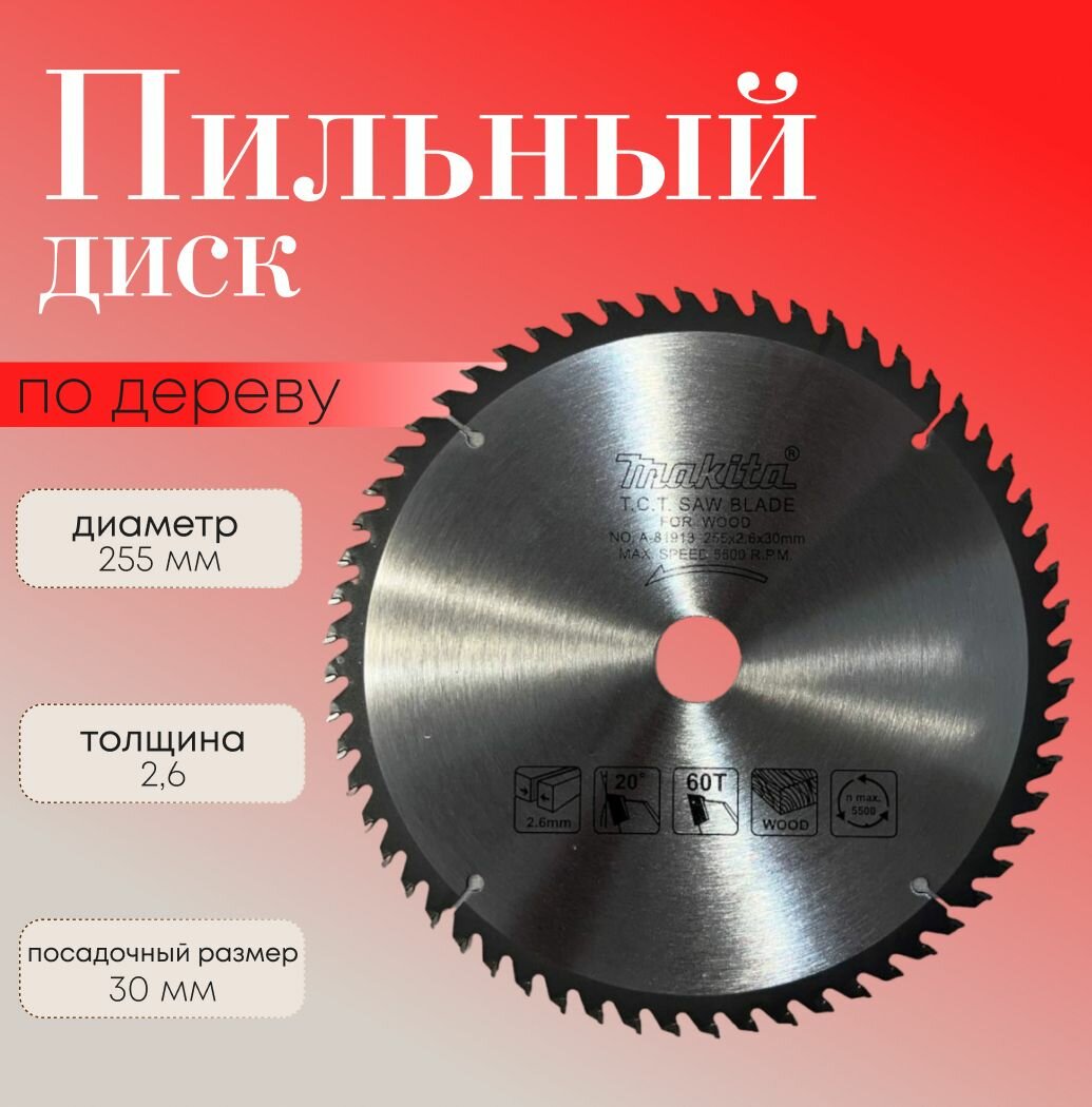 Диск пильный, MAKITA (255х2.6х30мм 60 зубов), по дереву интересное: